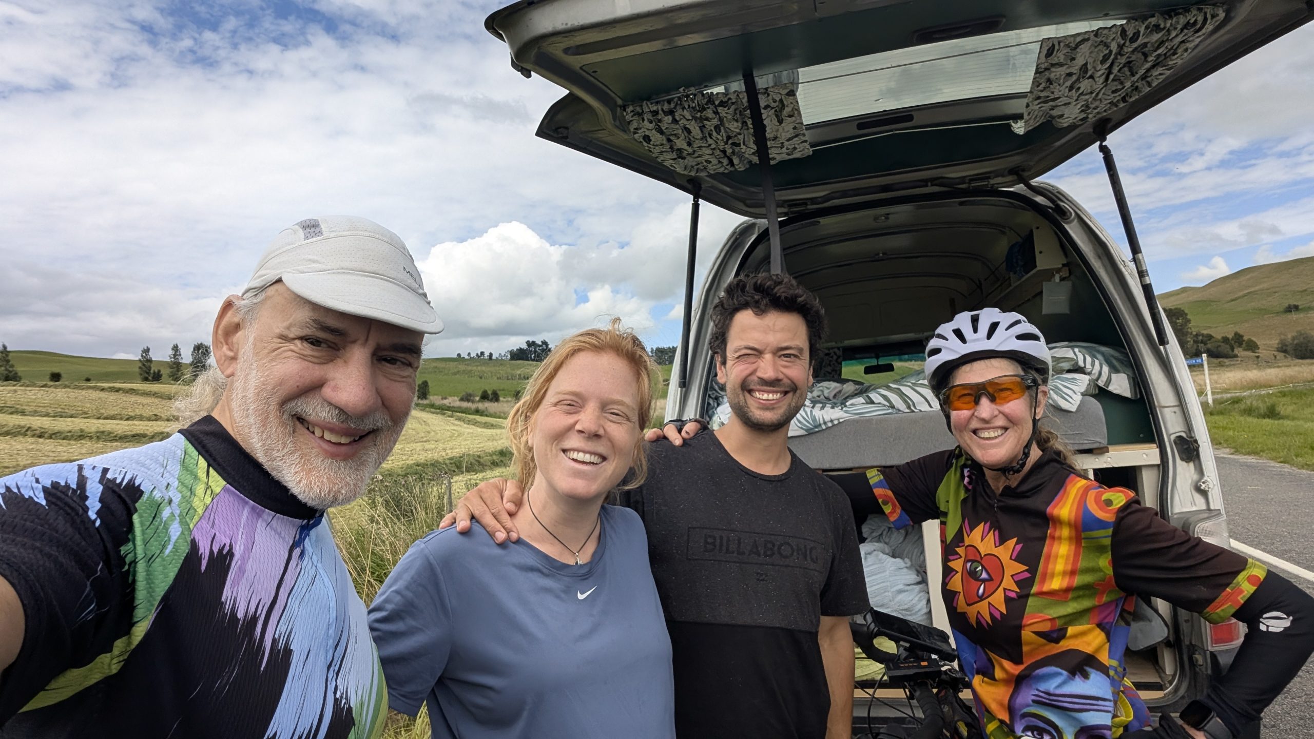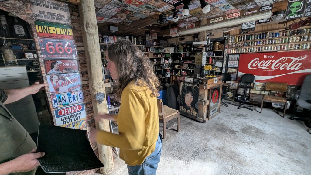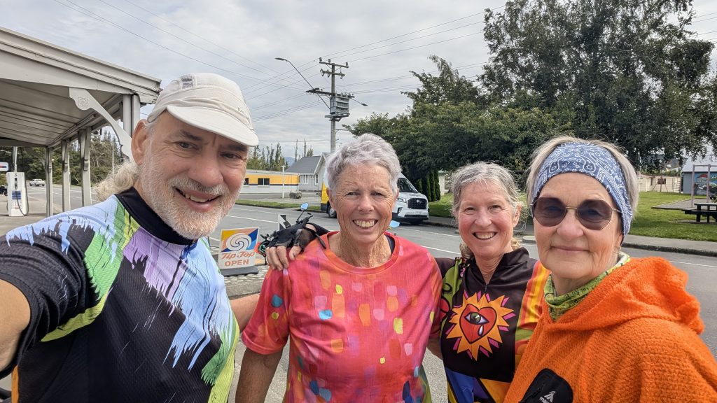 We got up in the morning, used the facilities and got a tour of Lindsay’s Man Cave. Somewhere in that time, Dana got coffee at the shop down the street. On the way out, I stopped at that same shop, got a breakfast pie, and met two nice women cyclists and started chatting with them. Dana soon joined and we learned Gwen was a semi-retired travelling nurse. She would go back for a number of weeks, just to earn enough to finance here next bike trip. Can’t remember exactly but I think Donna was also a nurse, but fully retired.