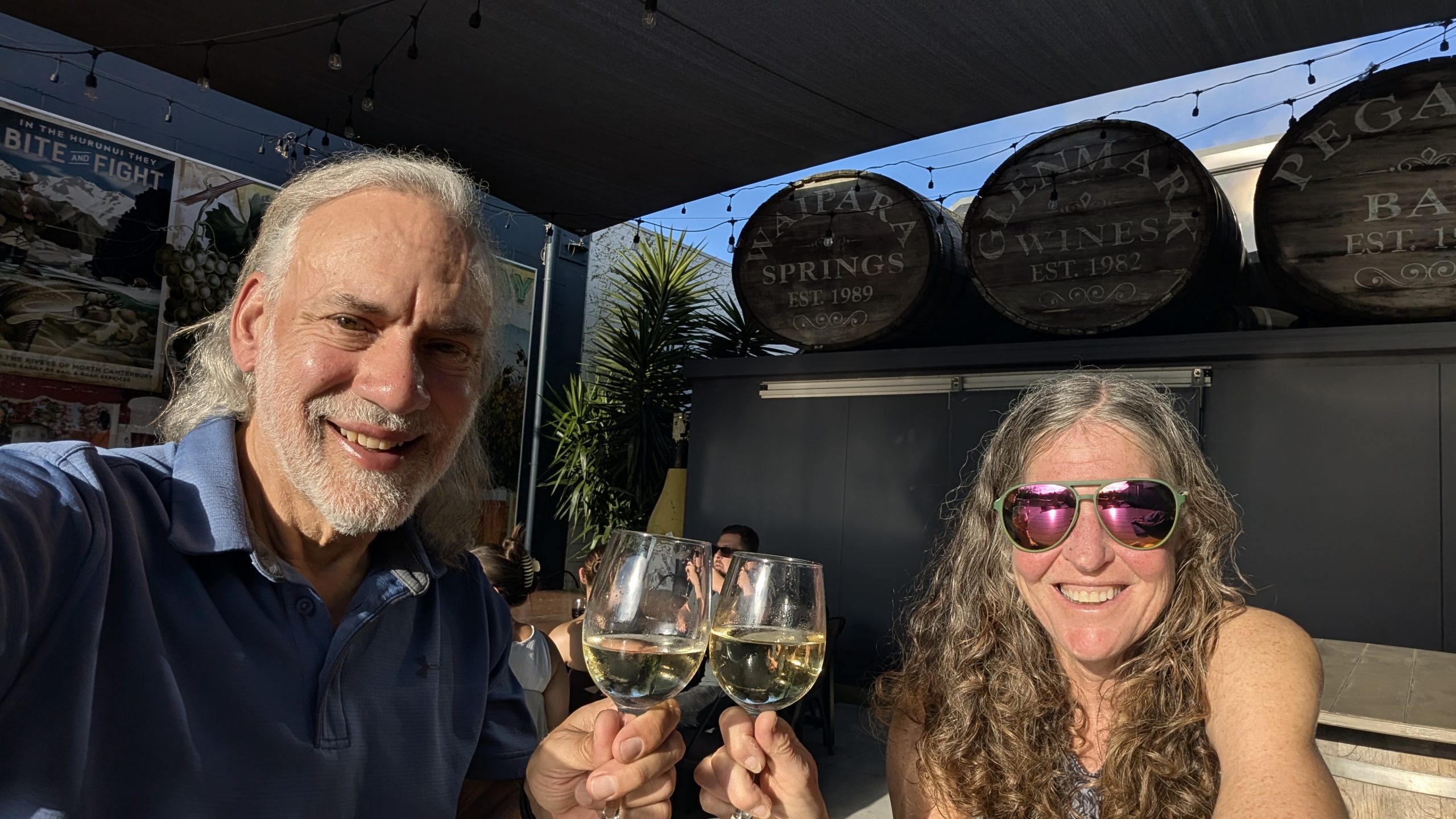 We did get to Amberley, and Dana got us a room at the Amberley Hotel! Yay! No camping tonight! We had a drink at the bar, walked around the town, and had dinner at the only restaurant open later than 8. It was run by an “American” woman (well, she was born in LA, but the family moved to NZ when she was 2). Good meal and nice conversations, followed by a leisurely walk back to a nice, clean, warm bed.