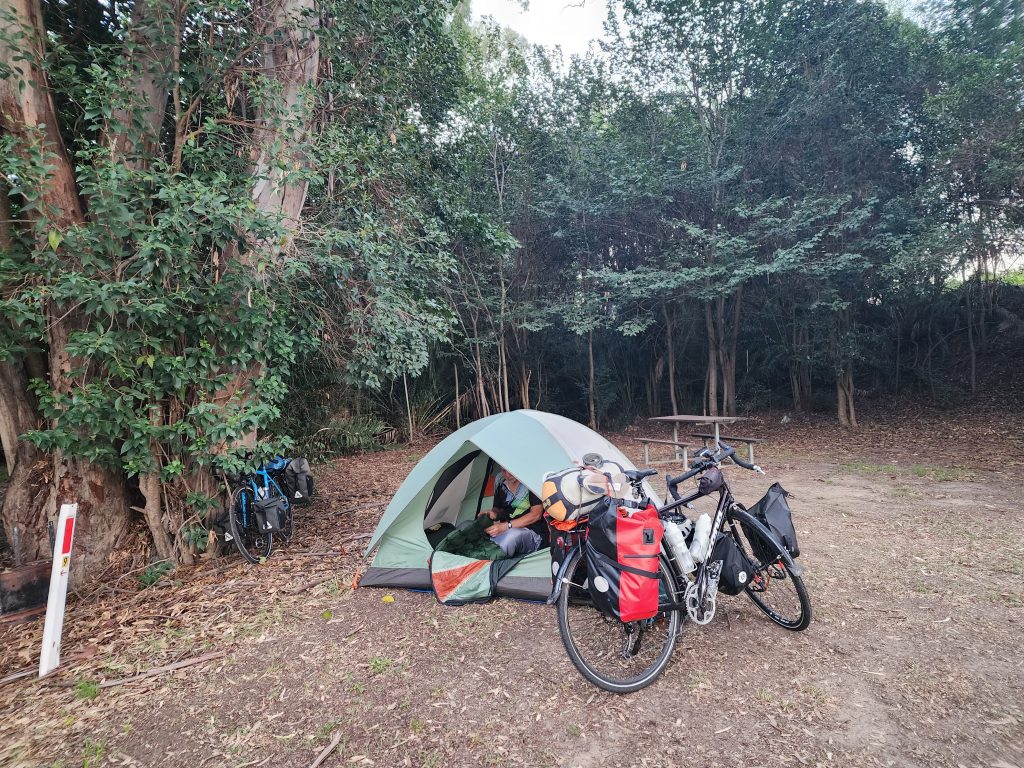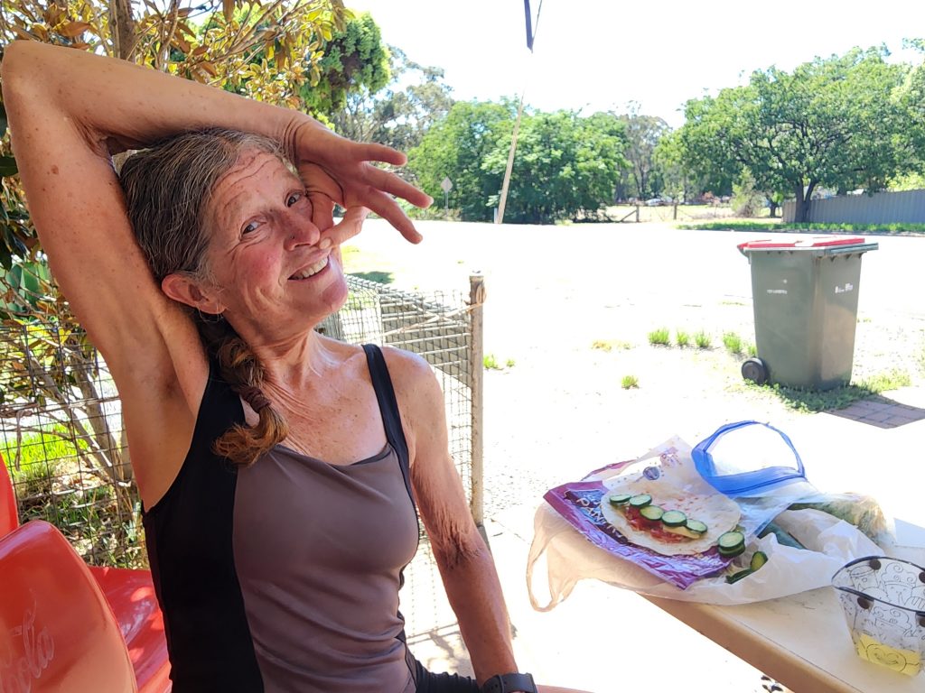 At the campground, coffee is usually the first task, then nature’s calls, then breakfast, then breaking camp. While not always in that order, though, it was pretty much the way it went today as we prepped to get to Wagga Wagga. Remember Janet and Ian who we met at the campground in Princetown? Well, we are taking them up on their offer to stay with them and that’s our goal for the day, just 100 km (60 miles) away, and with some moderate climbing compared to what we’ve been doing. I truly thought we’d be on a train to Sydney by now, but Dana had other plans.