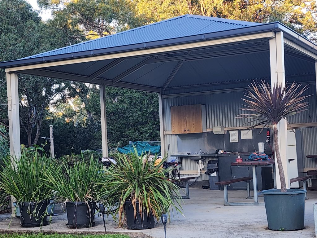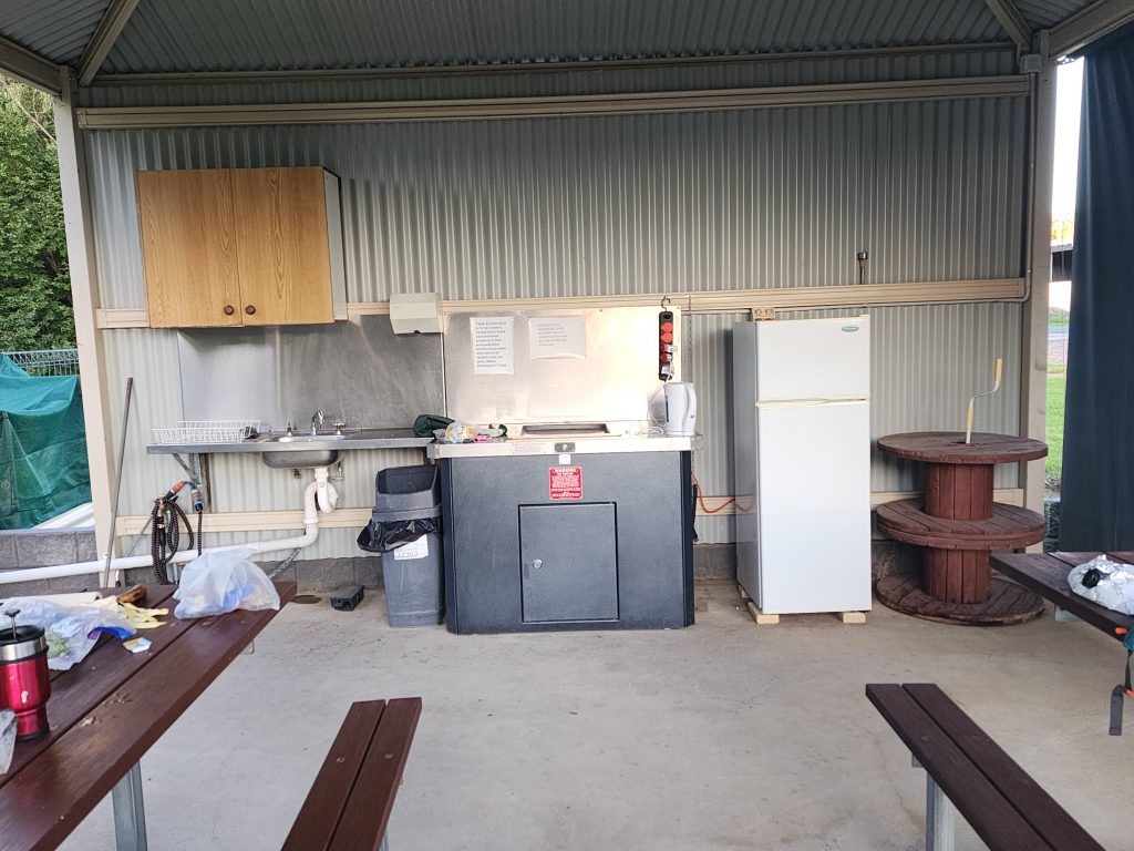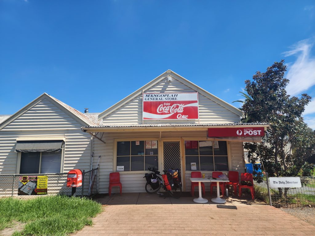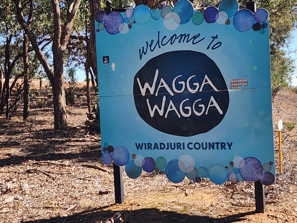 Thankfully, there was no more drama at the campsite and we had our breakfast in peace. We were soon on our way to Wagga (another shortening of the name in the Aussie tradition). Along the route, we stopped for lunch in the little hamlet of Mangoplah where the only thing open was the public toilets. The local pub, butcher, and post office/general store were the only other businesses we could see and they were all closed on this early Saturday afternoon. So, we parked at the store and used their outdoor furniture to make our lunches and get out of the sun for a while.