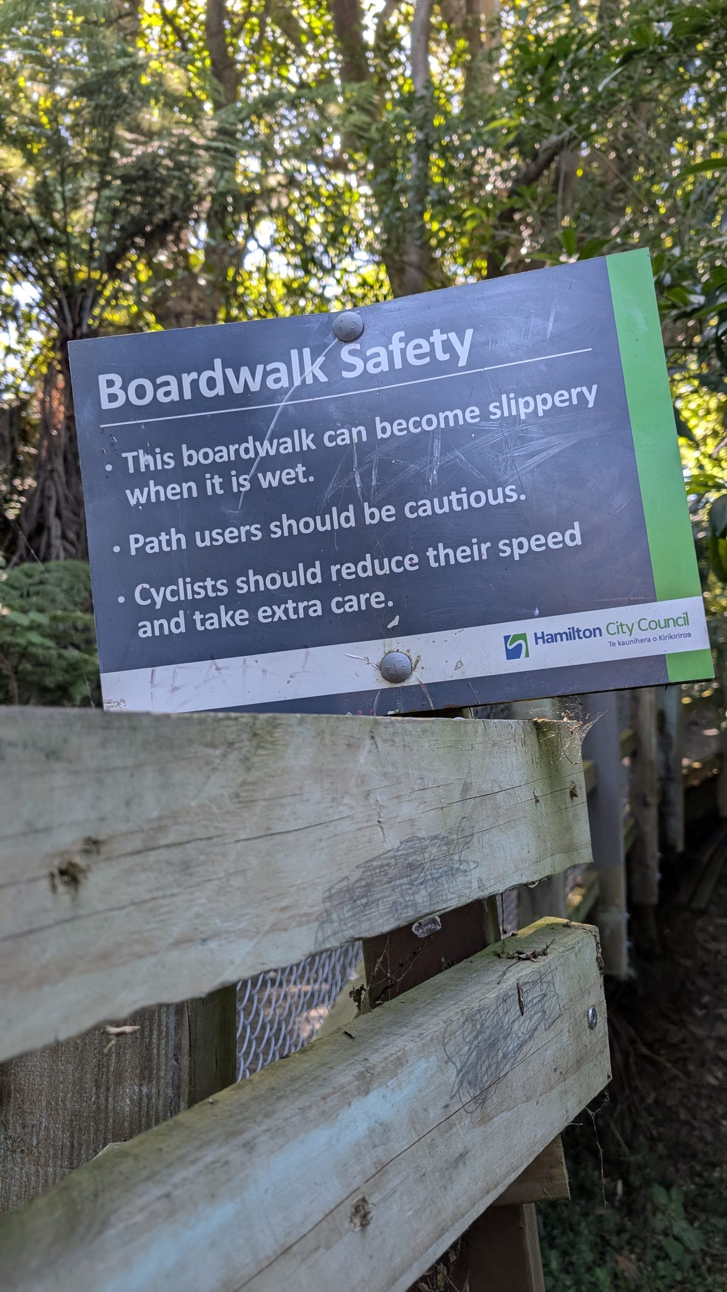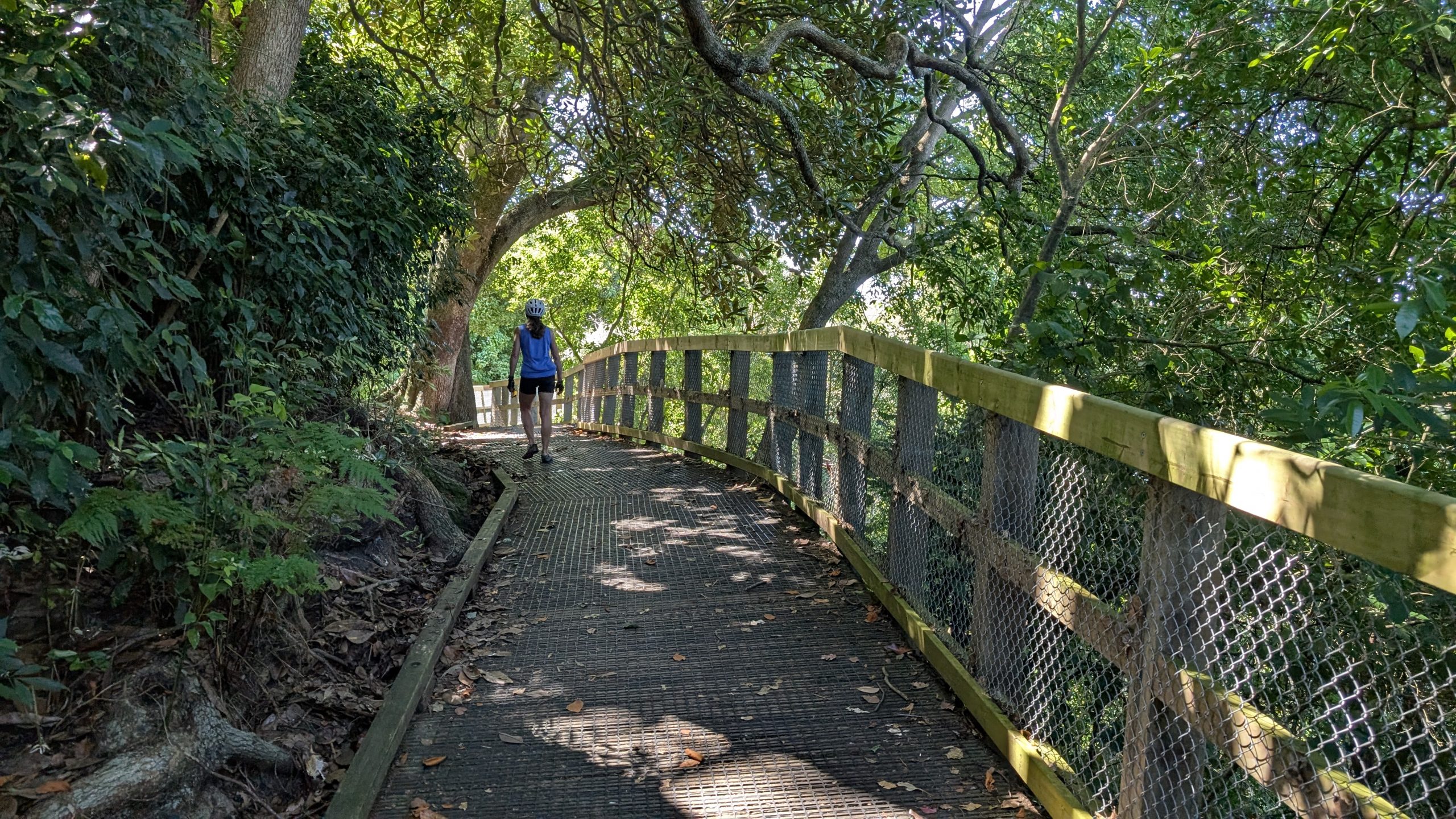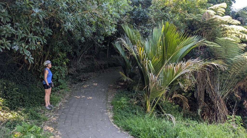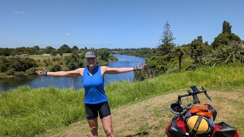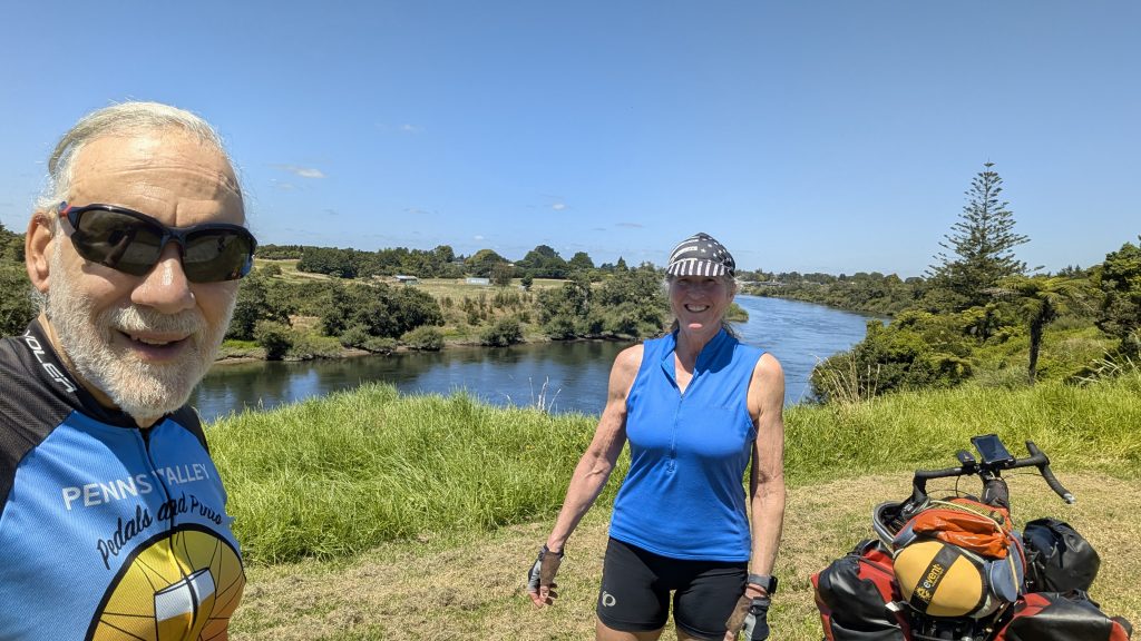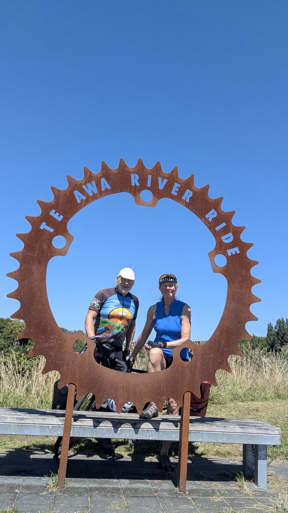 The Te Awa trail was lovely. Right along the river, fully paved, and mostly easy grades. Along the way, we heard from our Warmshowers host, Colin, in Te Amawatu, and decided to nix the search for gas as Colin’s profile noted that gas was available in his town. A quick check of the bike shops in Hamilton showed that they were closed or closing soon, so I had to put that off, too. I re-routed us to Colin’s place and we were on our way again.