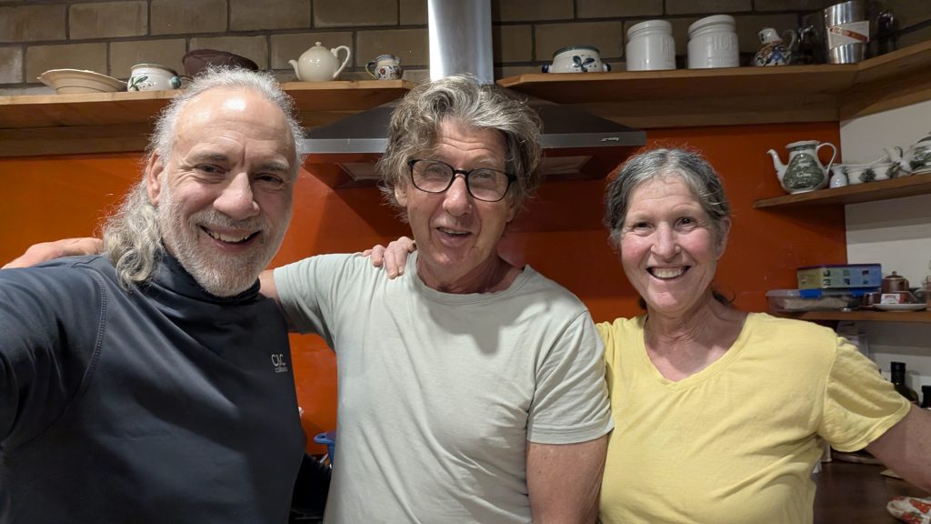 Colin made a seafood soup, and heated up a couple of meat pies for me, Dana cooked some pasta and we ate talked for hours, completely forgetting the fire Colin had started outside (tho I did pop out a couple of times while the cooking was going on to take in it’s warmth. When Colin shared that he was managing the care for his brother in Perth, Australia, he and Dana connected with a long conversation about his brother and her late father’s experiences with Parkinson’s and Parkinson’s Dementia, and their struggles with care giving, care givers, how much harder for Colin doing it over the phone and an occasional visit. An emotional but nice evening and we all headed to bed.