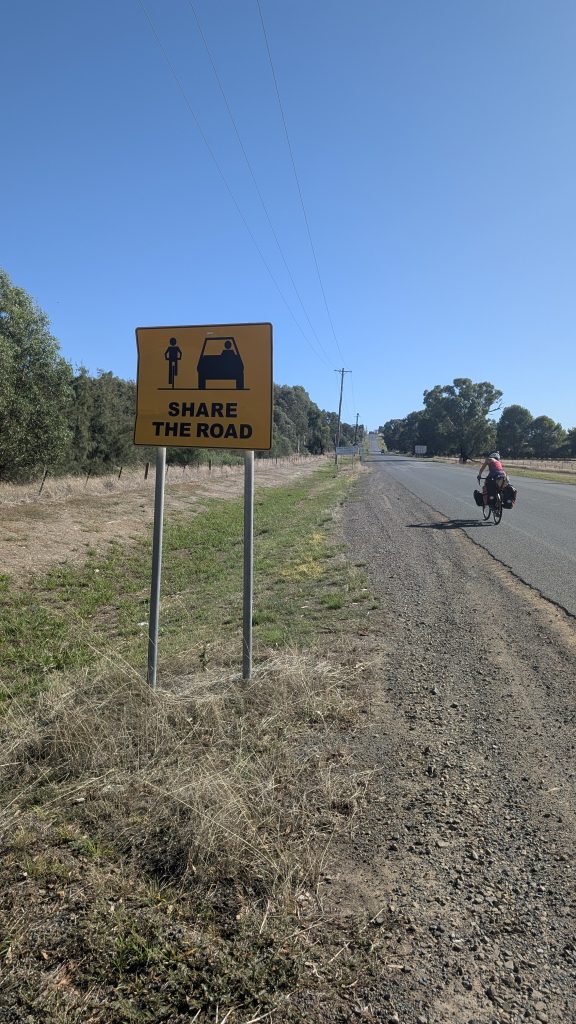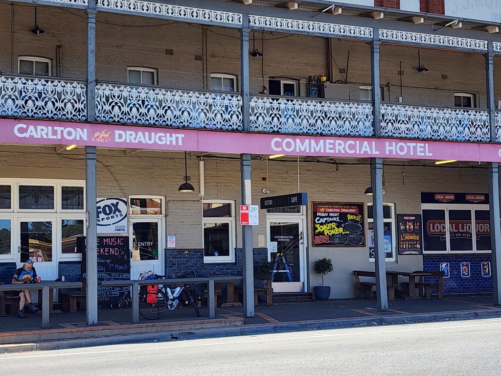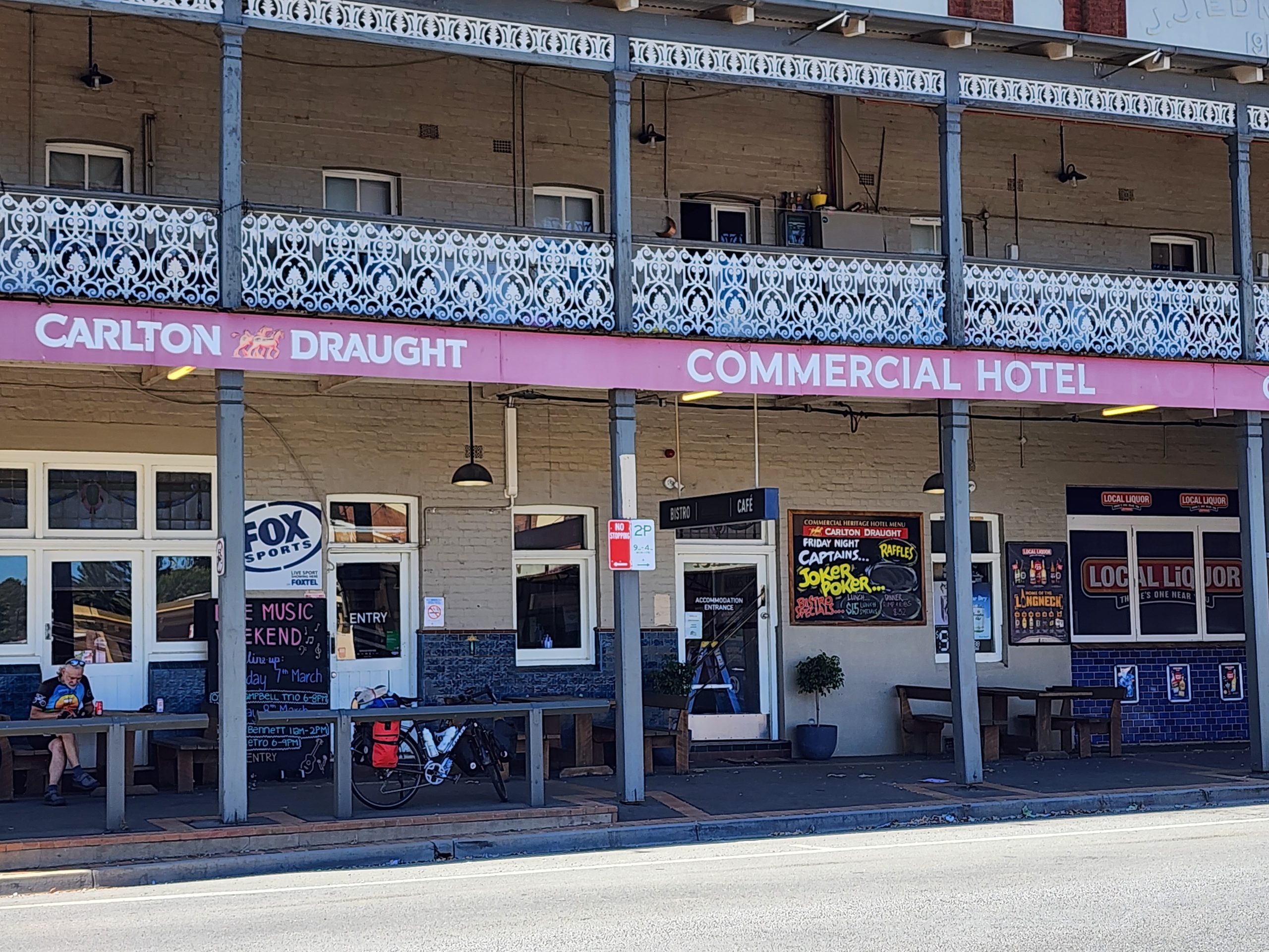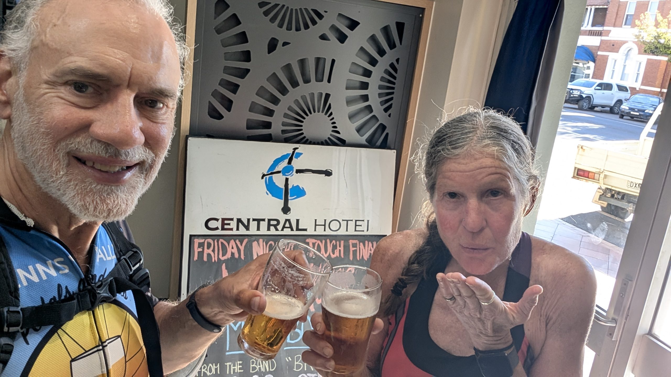 We did. For the most part on the highway with good shoulders and little traffic. So much so that even Dana agreed to stay on the highway vs. a side road with a big climb. We had a lunch stop in Junee, and got into Cootamundra before anything closed. Dana did her regular check out of the town and all the possibilities and I parked myself at the Central Hotel with a cold one until Dana joined me. Pretty pleasant ride all-in-all.