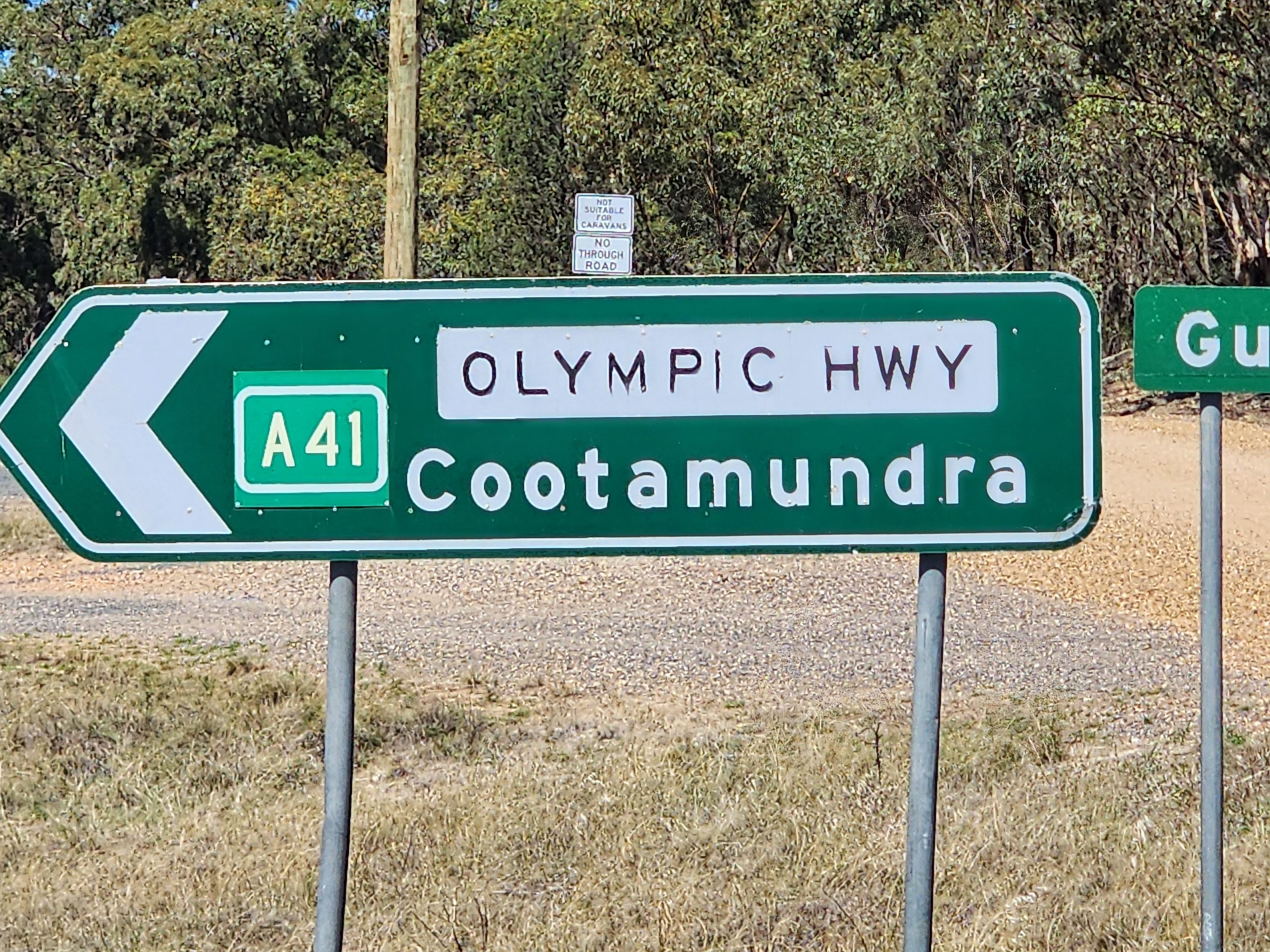 Ahhhh. Very good sleep and much needed rest — for me, at least. Dana was raring to go, but we both forgot the name of where we were going and Janet suggested “Coota-bloody-mundra” as a memory jog. It worked (though we didn’t add the “bloody” part when we were actually in Cootamundra). After making our coffee and posing for some quick pics, Ian was off on an exercise outing with friends.
