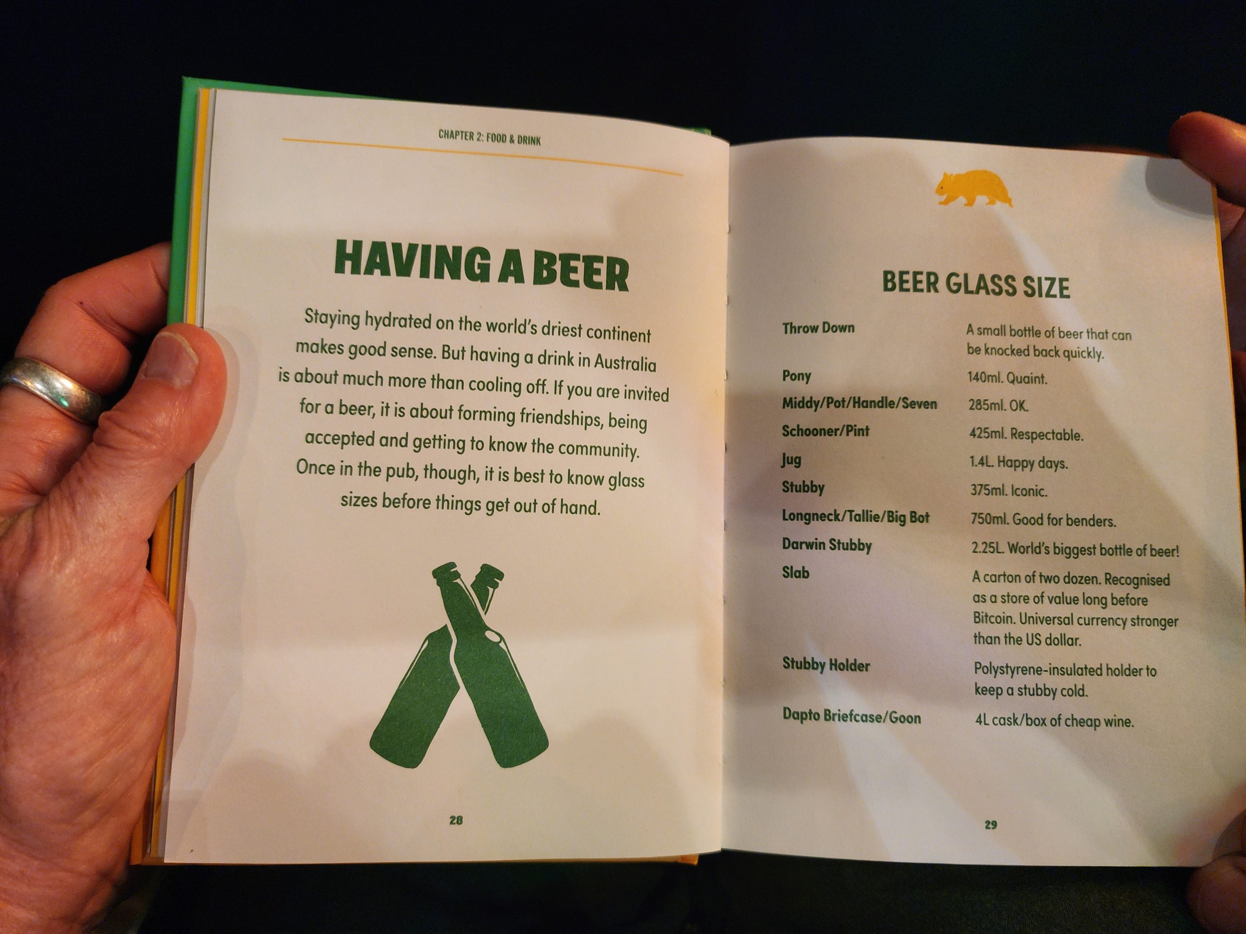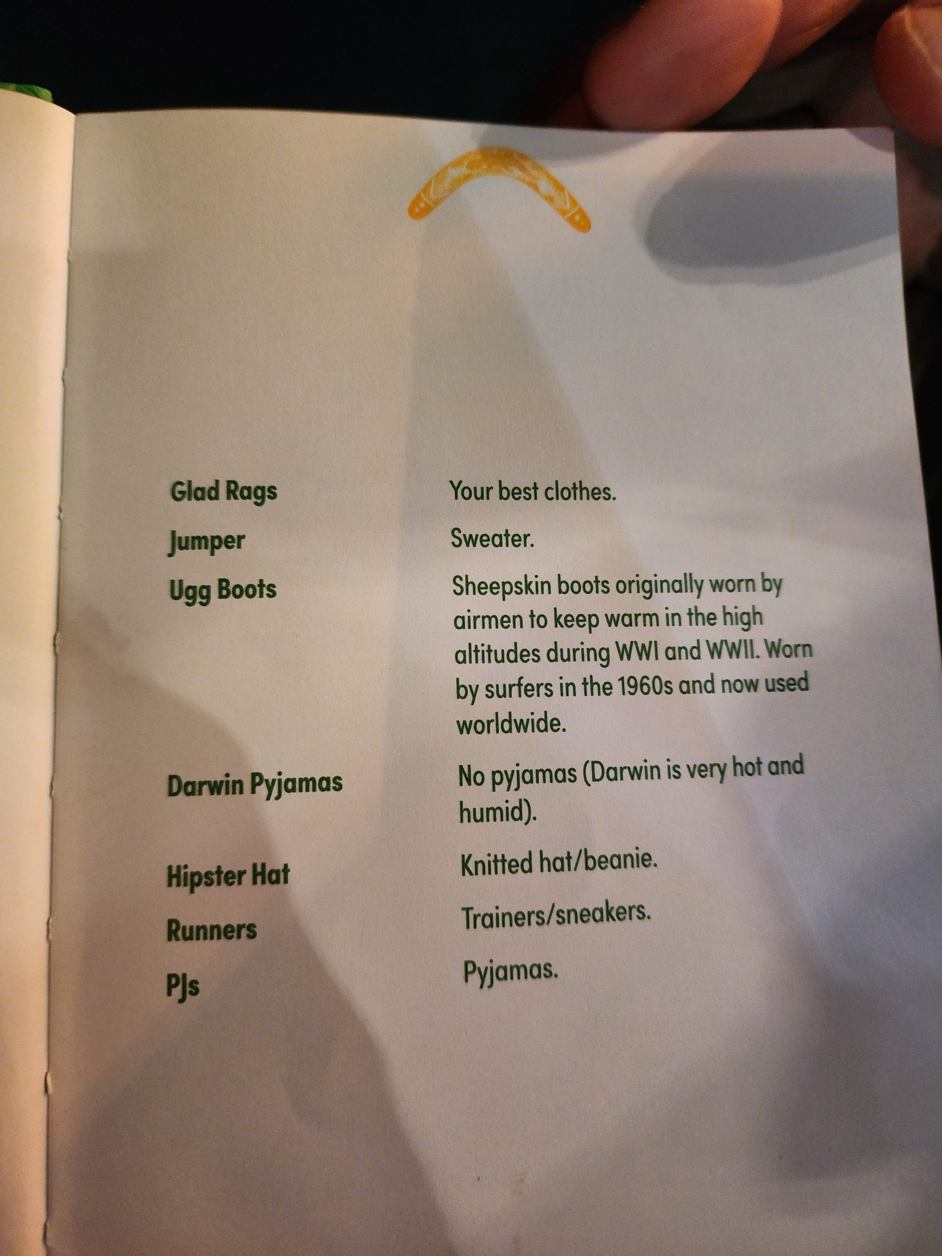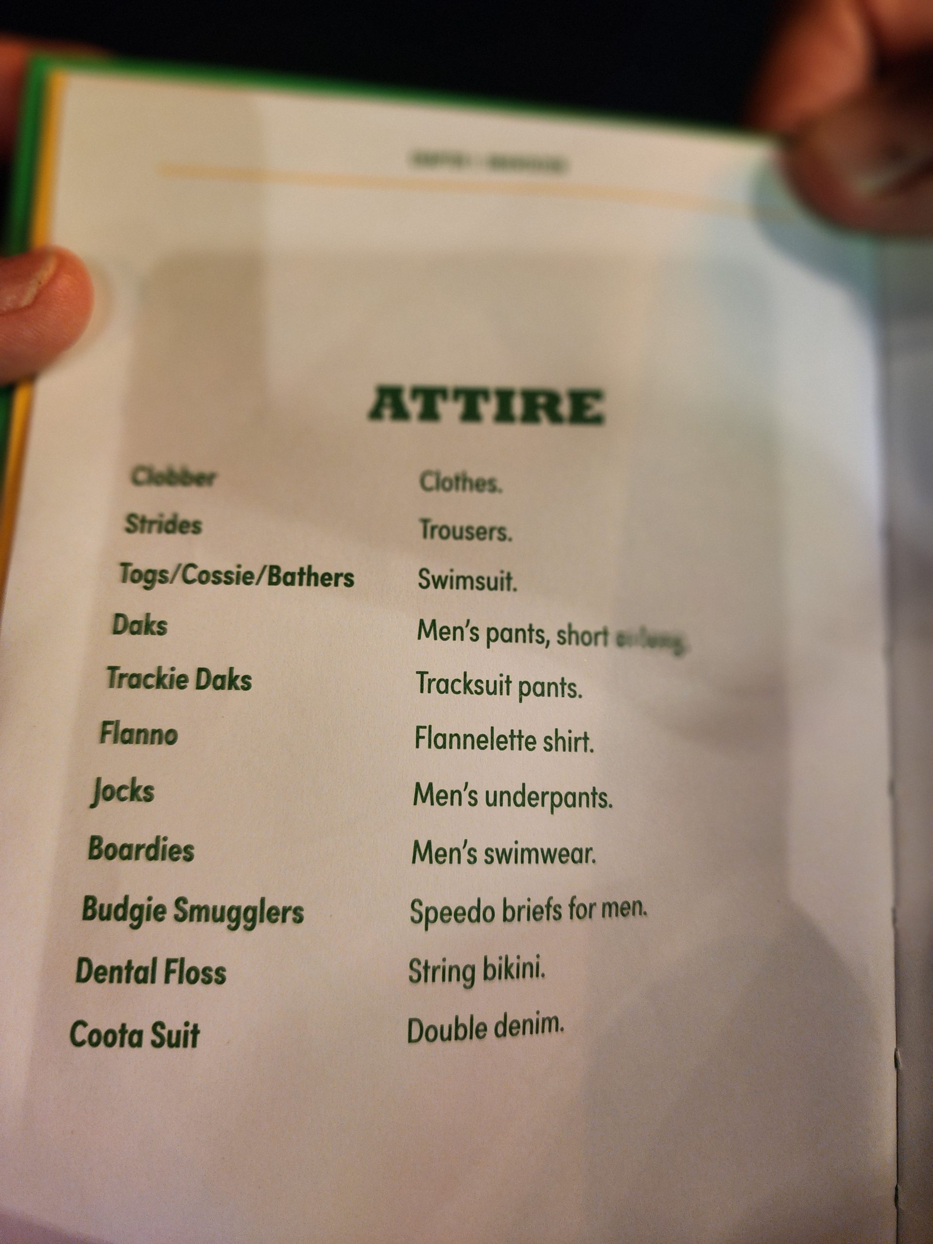 Our room was just a shade above the Cowra Hotel’s offerings, but it was clean, cool, and we were tired after the long day. We had a couple of beers at the Imperial Hotel where we found a book on Aussie Slang. Perfect entertainment while we drank our beers. We tried to find it on Amazon, but it was out-of-print, so we just took some pics, included for your reading pleasure below. Back at our hotel, we made dinner with our camping food, and settled in for a needed rest.