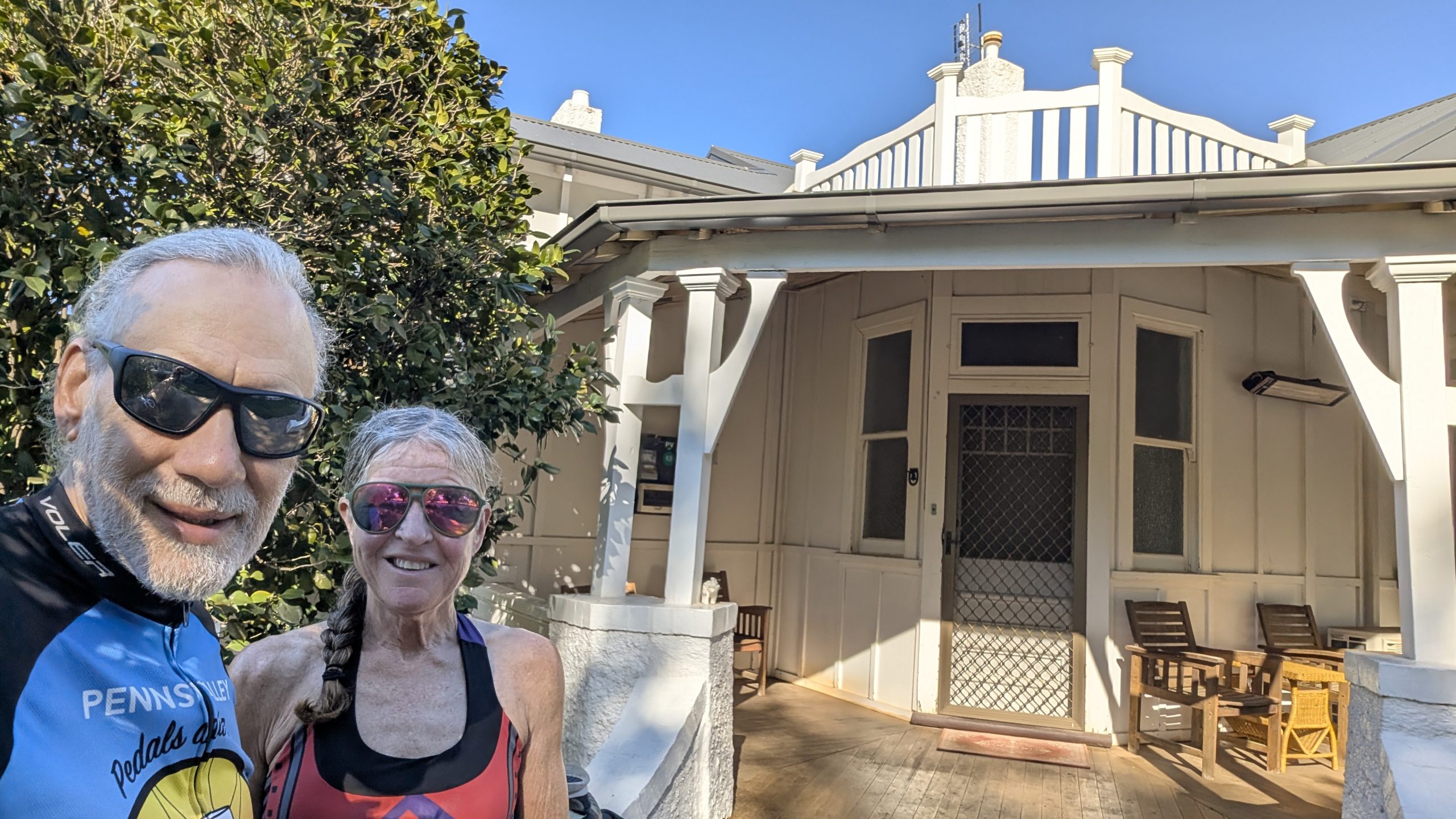 At mile 64, we made Koorawatha in the late afternoon. There was supposed to be camping, but we couldn’t find it, or anyone to ask. There was a hotel which Booking.com said was open, but it wasn’t. Called the # on the wall with Google Voice which was a big bust — no one answered, and while I could’ve left a message, even big hotels don’t want to make an international call to return yours. Not everyone has WhatsApp, and this place didn’t — I tried. As we were sitting there wondering what to do, a work crew of six in two Utes came to get beers at the hotel bar. I told them it was closed and they took off for Cowra, 17 miles away. Easy for them in vehicles. Probably an hour to an hour 15 for us. Took about 5 minutes to make that decision even though it would make for an 80 mile day. It was mostly flat, and we could make it by dark, so we took off.