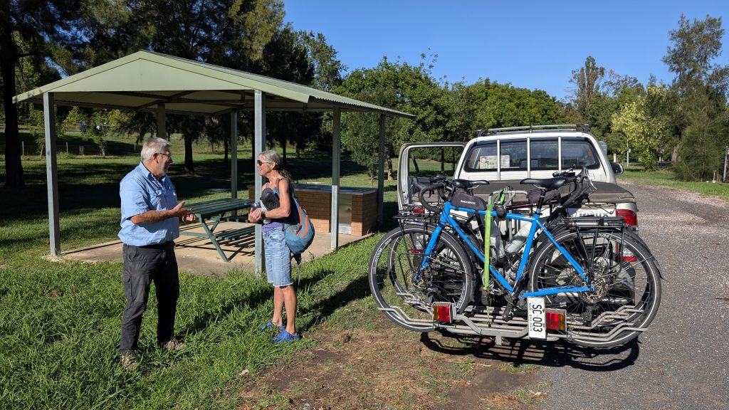 Despite the proximity to the highway, we did get a good sleep and heard from Stephen as soon as we got up. He was on his way and would be to Cudal by 9. We made breakfast and broke camp and were all packed up and ready when he arrived. We loaded our bags into his pickup bed and put the bikes on the rack and off we went.