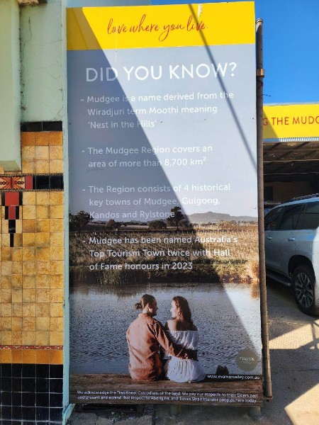 Stephen then took us to Mudgee where there was a Chemists Warehouse and I got a small bottle for $11. We took the opportunity to walk around Mudgee and had lunch and refreshments at the Lawson Park Hotel — with a beautiful outdoor seating area and excellent food.