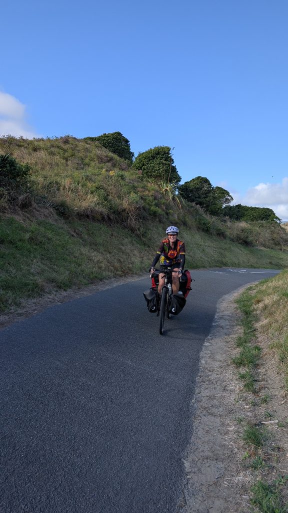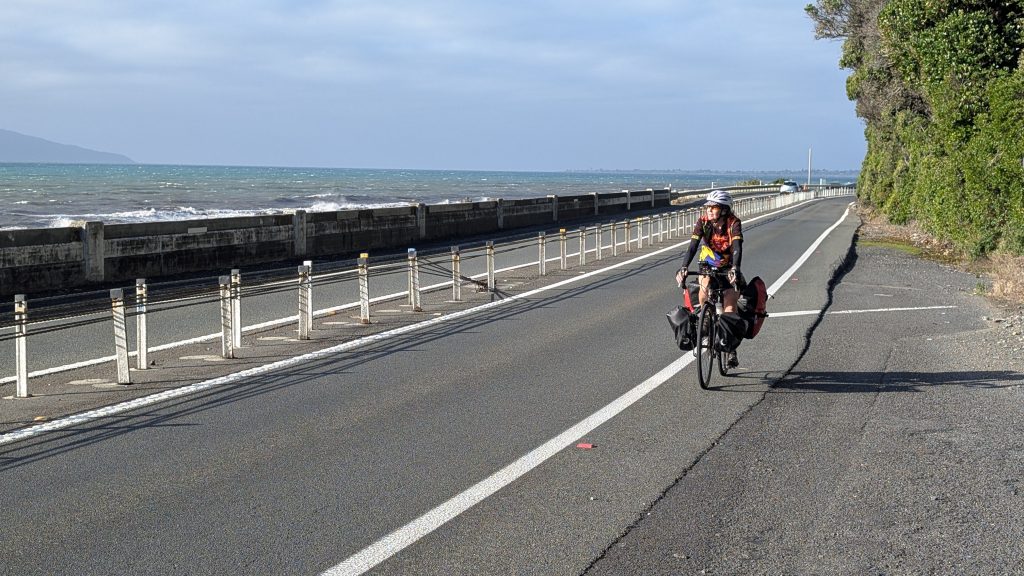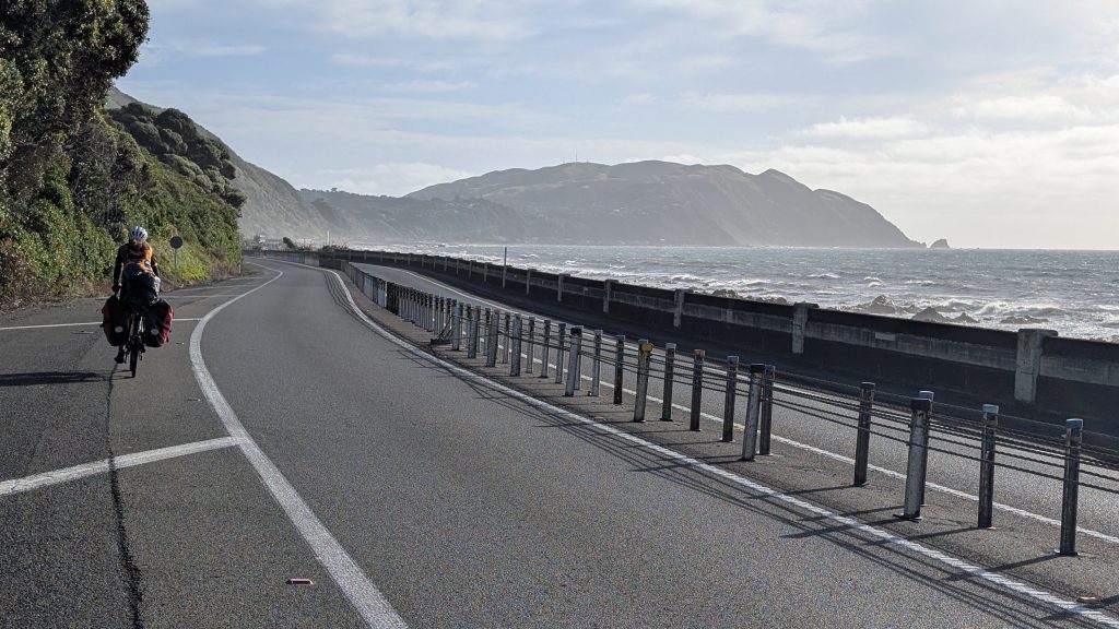 We’d been carrying a bag of oatmeal since Te Kauwhata and finally opened it for breakfast, with a side of coffee from the convenient little kitchenette in our room. Today was going to be a long day, so we needed the fuel. We both enjoyed the respite from riding and got a great sleep to prep us for the ride to Pukerua Bay.