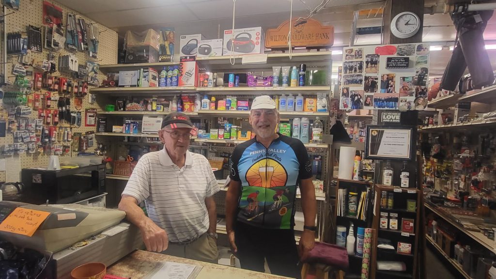 Lunch was in Wilton, WI where we ate at a gazebo, grabbed a couple of cokes at the local grocery store/souvenir shop (the proprietor had to turn the lights on for us). After lunch, we wandered over to Hardware Hanks and had a chat with the owner — who had been in the business for 52 years. We didn’t need any of his hardware, but did buy an ice cream sandwich.