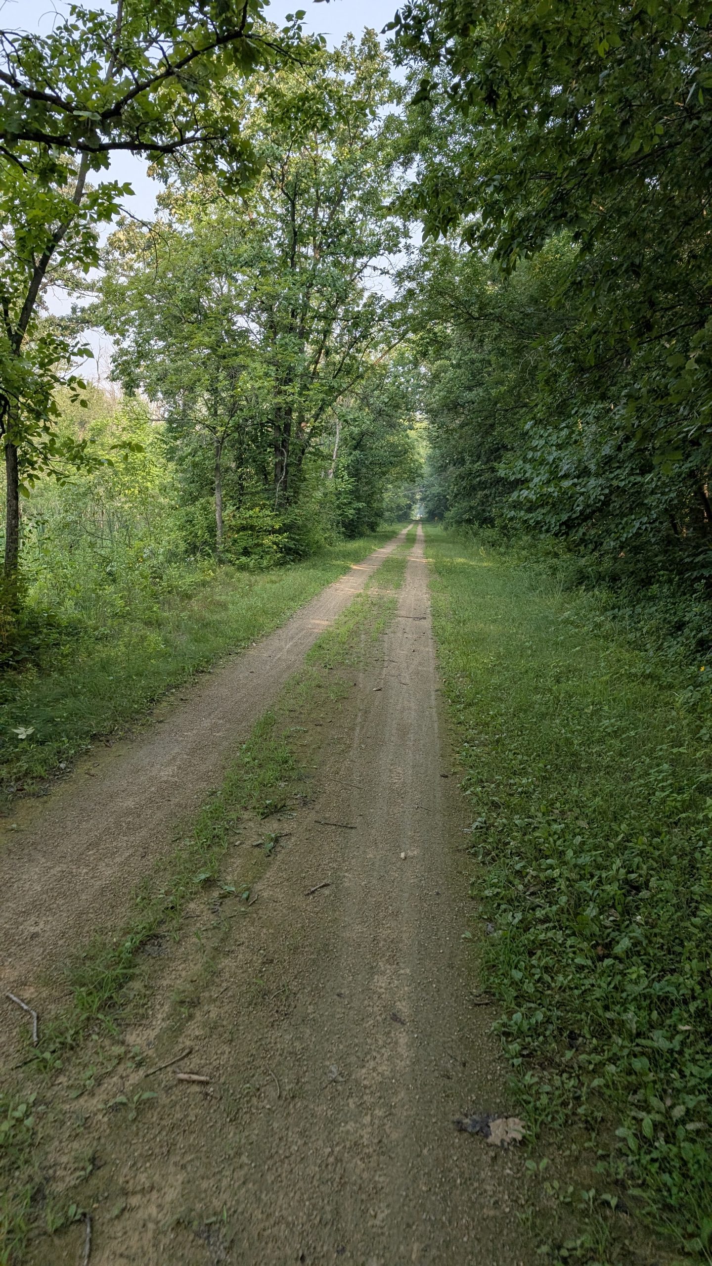 We backtracked to the trail crossing, only to find it was 30′ up. Would have been a couple of miles back to where we could get on it, so up the hill it was, and I was grumbling all the way. Until we reached the top and on the straightaway downhill, I hit my top touring speed ever of 51.5mph.