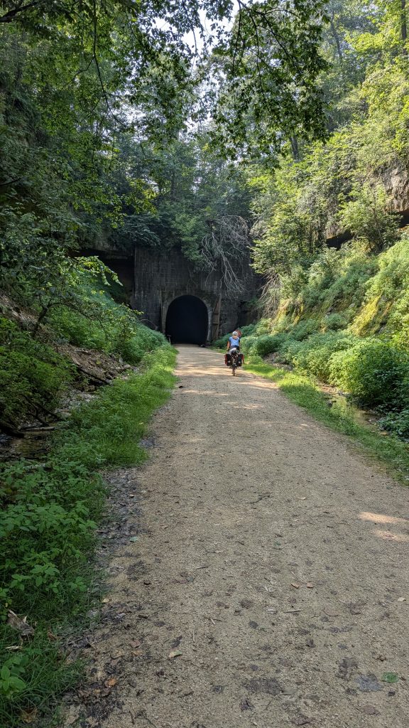 Yes, you read that correctly: 88 long miles. Mostly on rail trails, over 1 hill, and through two tunnels. Tired legs, sore butts, and short tempers. Ended up at a brewery, after a quick beer at another bar that let’s just say, wasn’t 5 star. We got to our Warmshowers host, Arial, around 8:30.