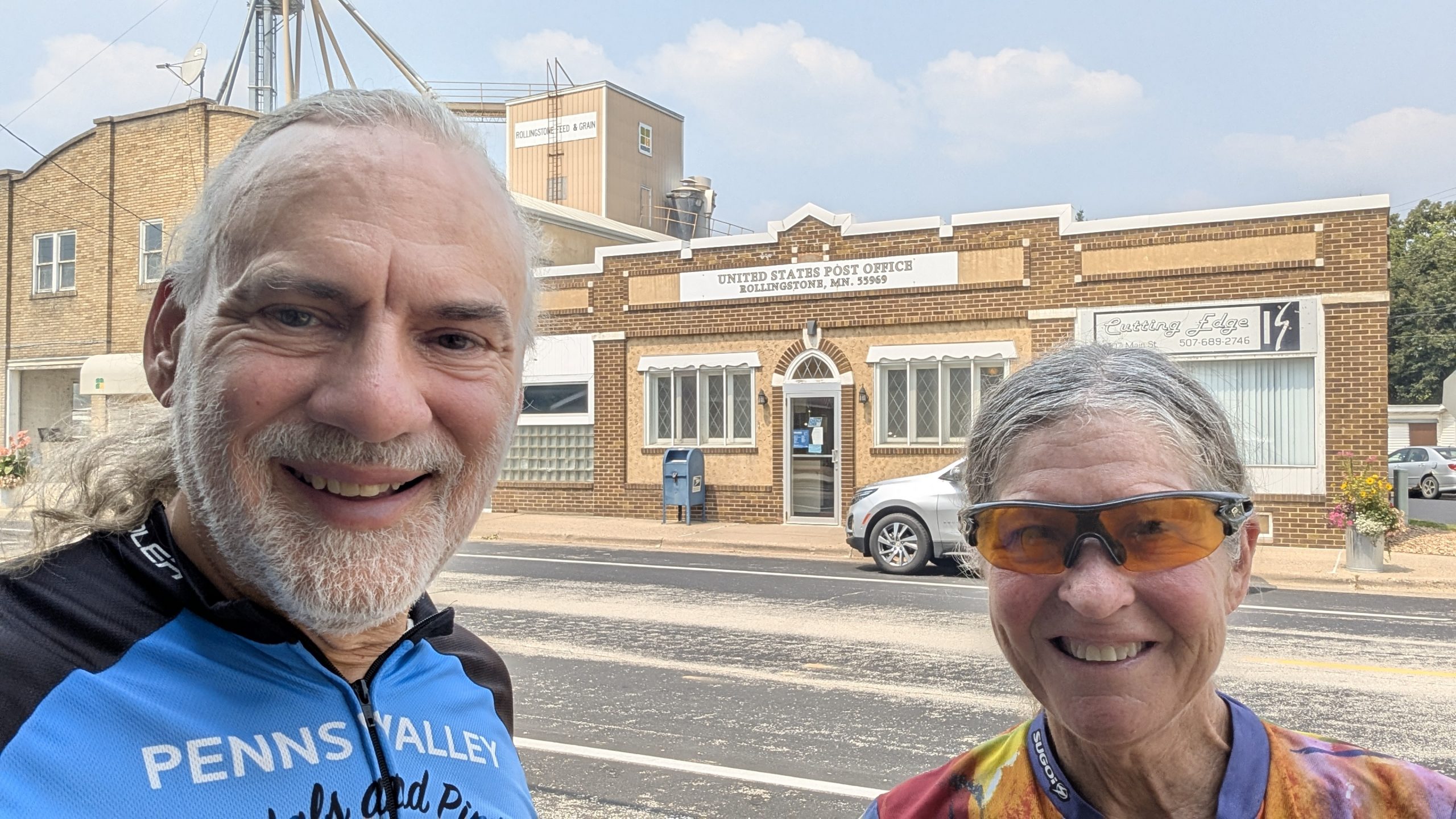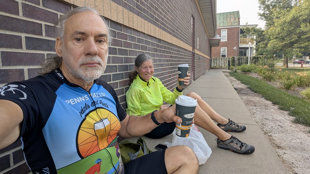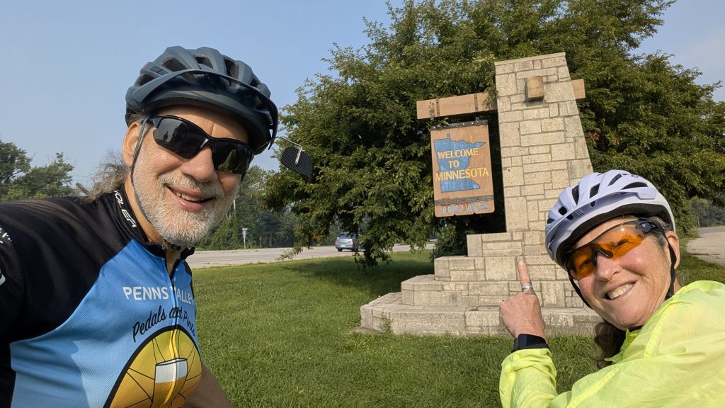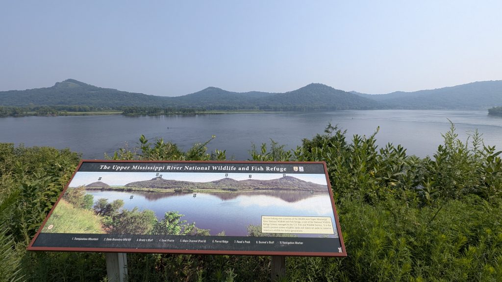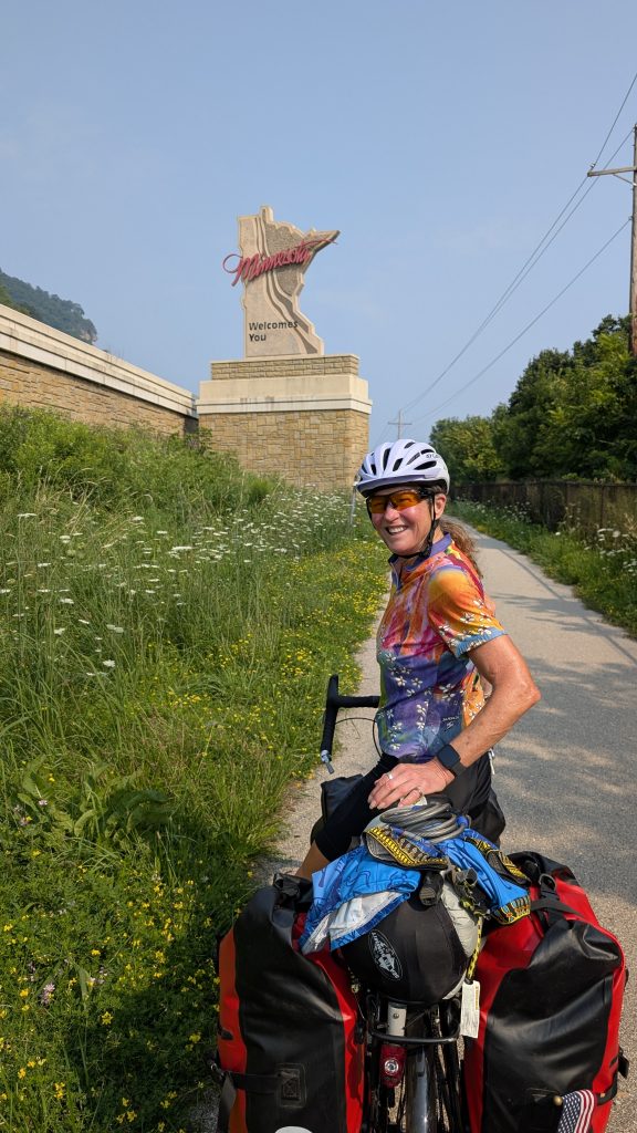 We left Arial’s at 8 as she had to get to work at 8:30 and we didn’t want to impose any longer than we had to. We had a quick breakfast at the Kwik Stop — not scenic, but certainly interesting given the characters going in and out and hanging around. After what WAS a scenic crossing of the Mississippi River from La Crosse to Minnesota, we headed up the MRT (Mississippi River Trail) headed for Fischer Hill Rd in Plainview, home of my longtime friends, Eric & Wanda Hanlon.