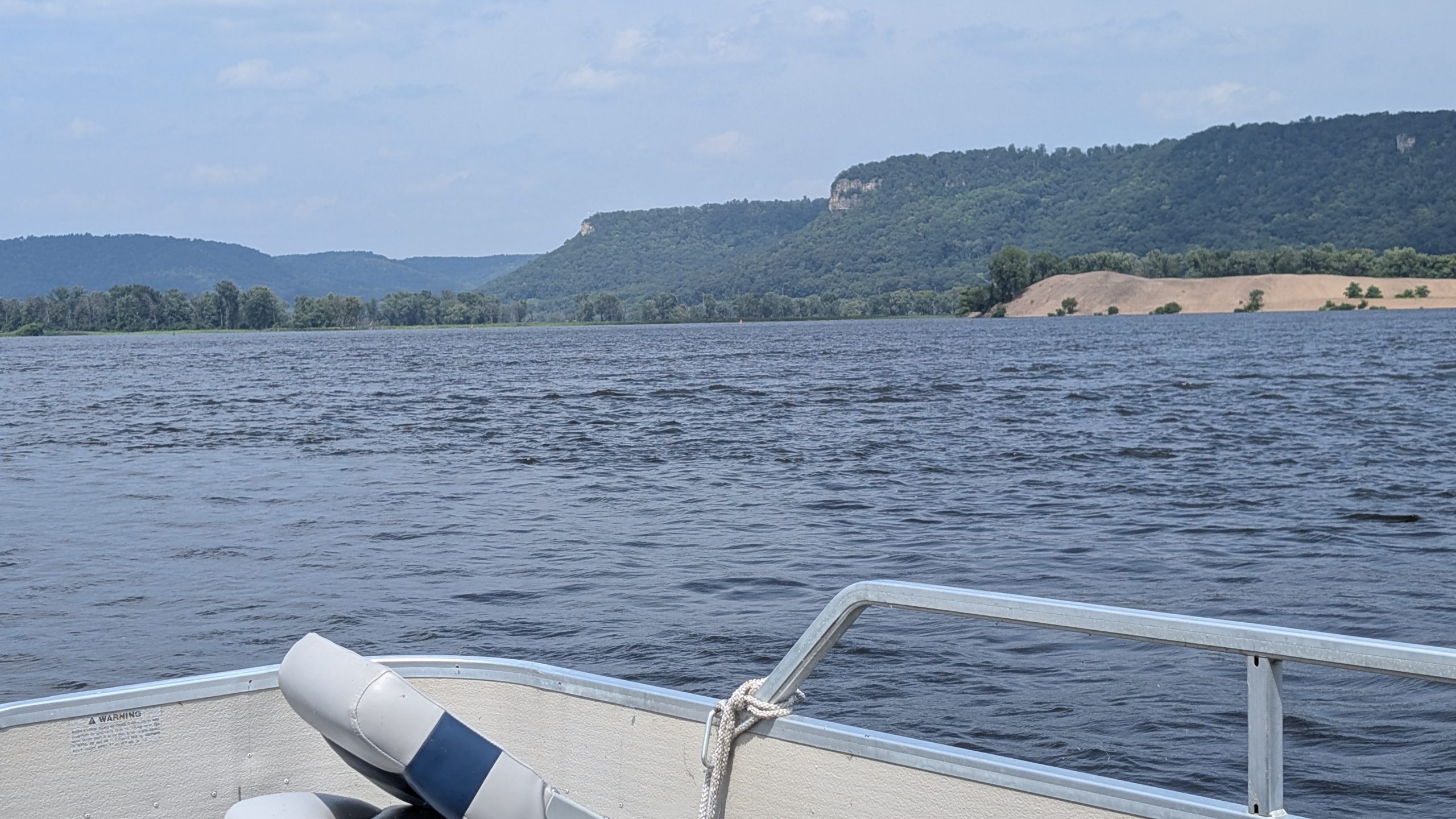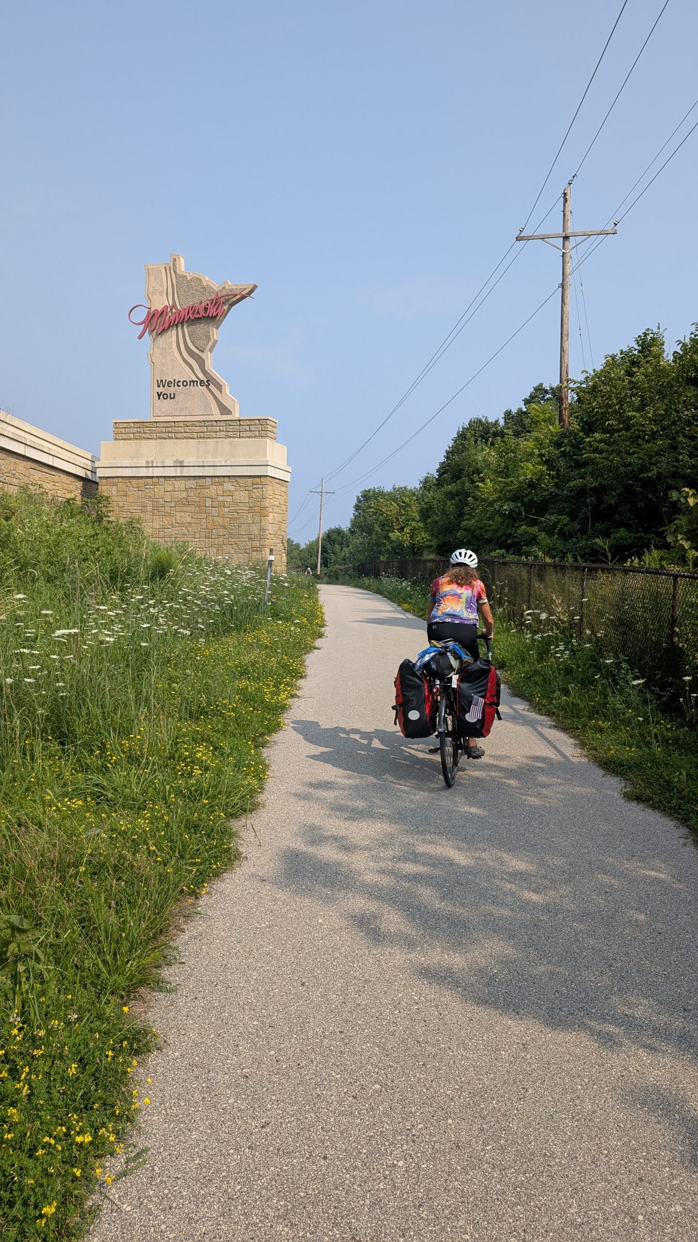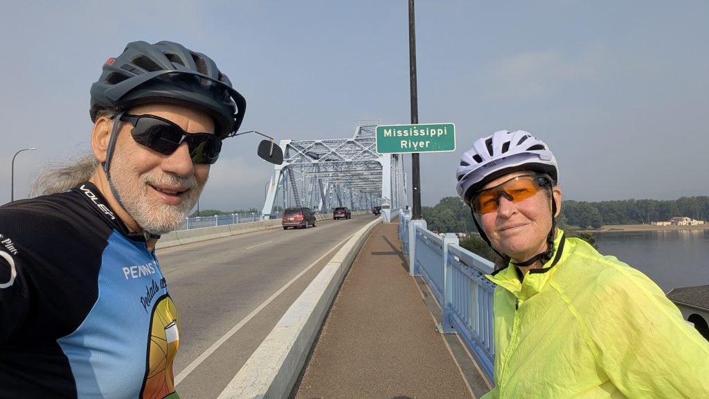 We left Arial’s at 8 as she had to get to work at 8:30 and we didn’t want to impose any longer than we had to. We had a quick breakfast at the Kwik Stop — not scenic, but certainly interesting given the characters going in and out and hanging around. After what WAS a scenic crossing of the Mississippi River from La Crosse to Minnesota, we headed up the MRT (Mississippi River Trail) headed for Fischer Hill Rd in Plainview, home of my longtime friends, Eric & Wanda Hanlon.