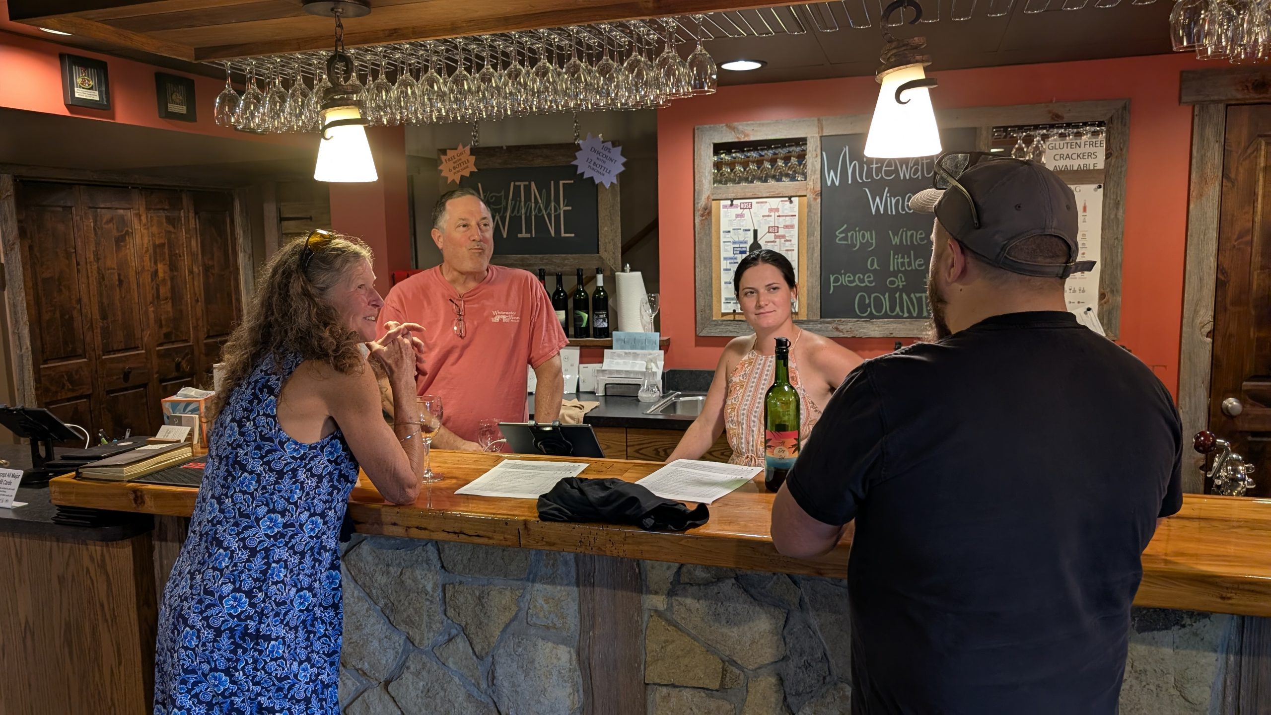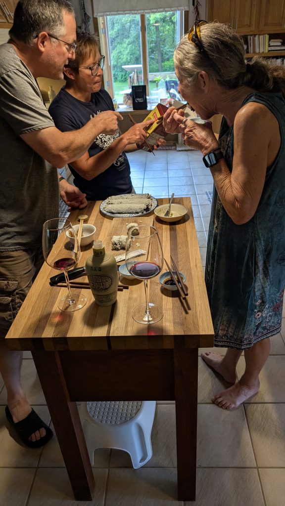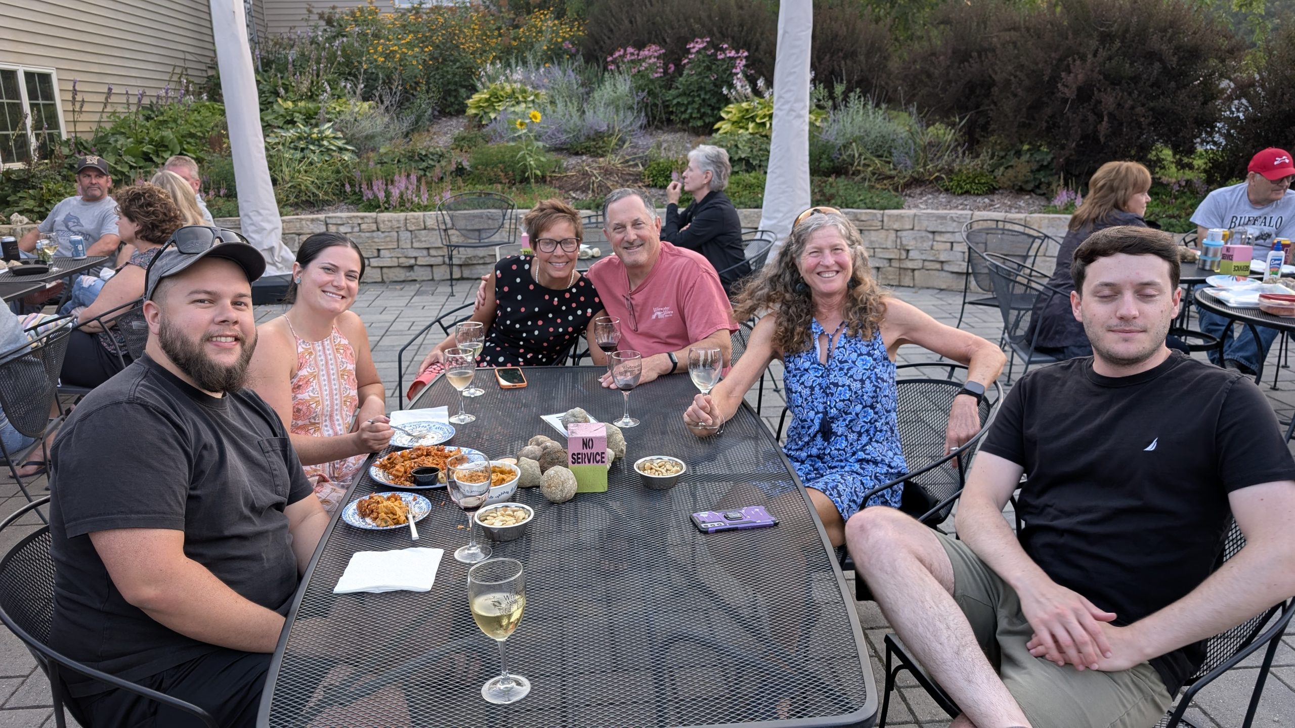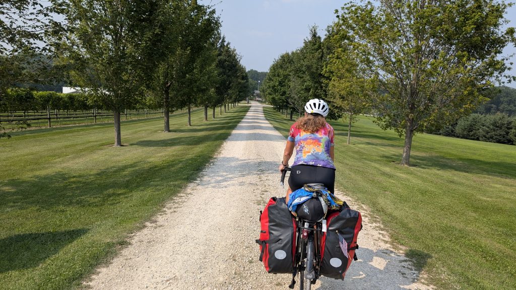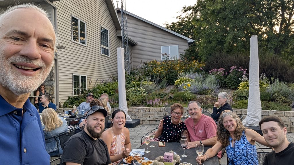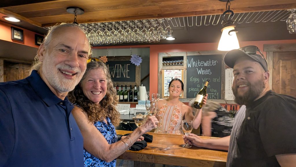 Fast forward 20 years. The winery grew from a hobby to a full-fledged operation, with Eric taking care of the production side, and Wanda running the Winery and marketing, et al. When Dana and I rode up to 10832 Fischer Hill Rd (I was determined to go on my own power this time), we saw Eric walking up the road to get the mail, and the winery busy with customers. It wasn’t 20 years since I had seen them, but it had been many years and they hadn’t met Dana (so, 13+ years at least?). Amazing how you can just jump back in. But not like we hadn’t spoken either — on my 2022 Retirement trip, I stayed with Hannah in San Jose, CA. Hannah is now working at another winery near Rochester. Sam, the youngest, is still at home saving for a place of his own and he and Dana connected with some spirit tasting late Friday night when the rest of us were in bed.