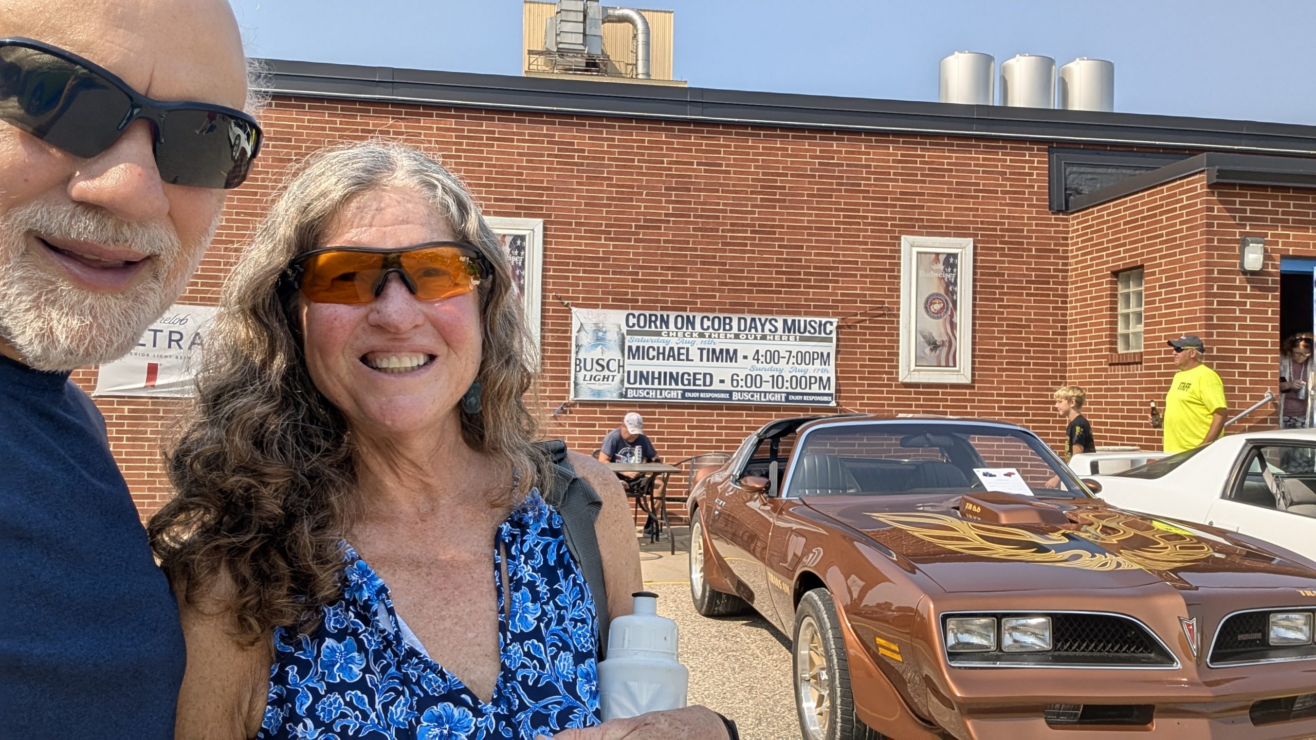 We felt like royalty. 3 squares a day and flowing wine and scrumptious desserts. Dana got to get 2 runs in and I got to rest! On Saturday, I helped Eric with a few chores around the vineyard, did some work on the bikes, and that afernoon, we took Wanda’s car into Elba and Plainview to check out a couple of local festivals, and that evening, there was a band at the winery, where Hannah (a trained vintner herself) treated us to a tasting. Eric’s wines, to say the least, are excellent across the spectrum of reds and whites. World class, in our opinion. As the vintner himself said, “If it wasn’t good, you wouldn’t be tasting it!”