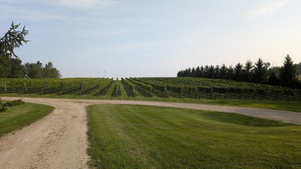 A little backstory. Eric & I were in the Consultants’ Network in State College in 1993ish, and later at Roadware in Kylertown. After Roadware relocated the PA office back to Paris, Ontario, Eric & Wanda moved to Minnesota, Wanda’s home state. On my first cross country trip in 2005, I was headed for the Hanlons when I fell and tore up my knee and right gluteus maximus ( for all the deets, see my 2005 Tour blog, July 16-19). Eric drove the 1 1/2 hrs with his pickup to rescue me. Eric, Wanda, Zack, Hannah, & Sam, nursed me for 4 days until I was stable enough to move on. Also at the time, Eric was growing grapes and making wine as a hobby.