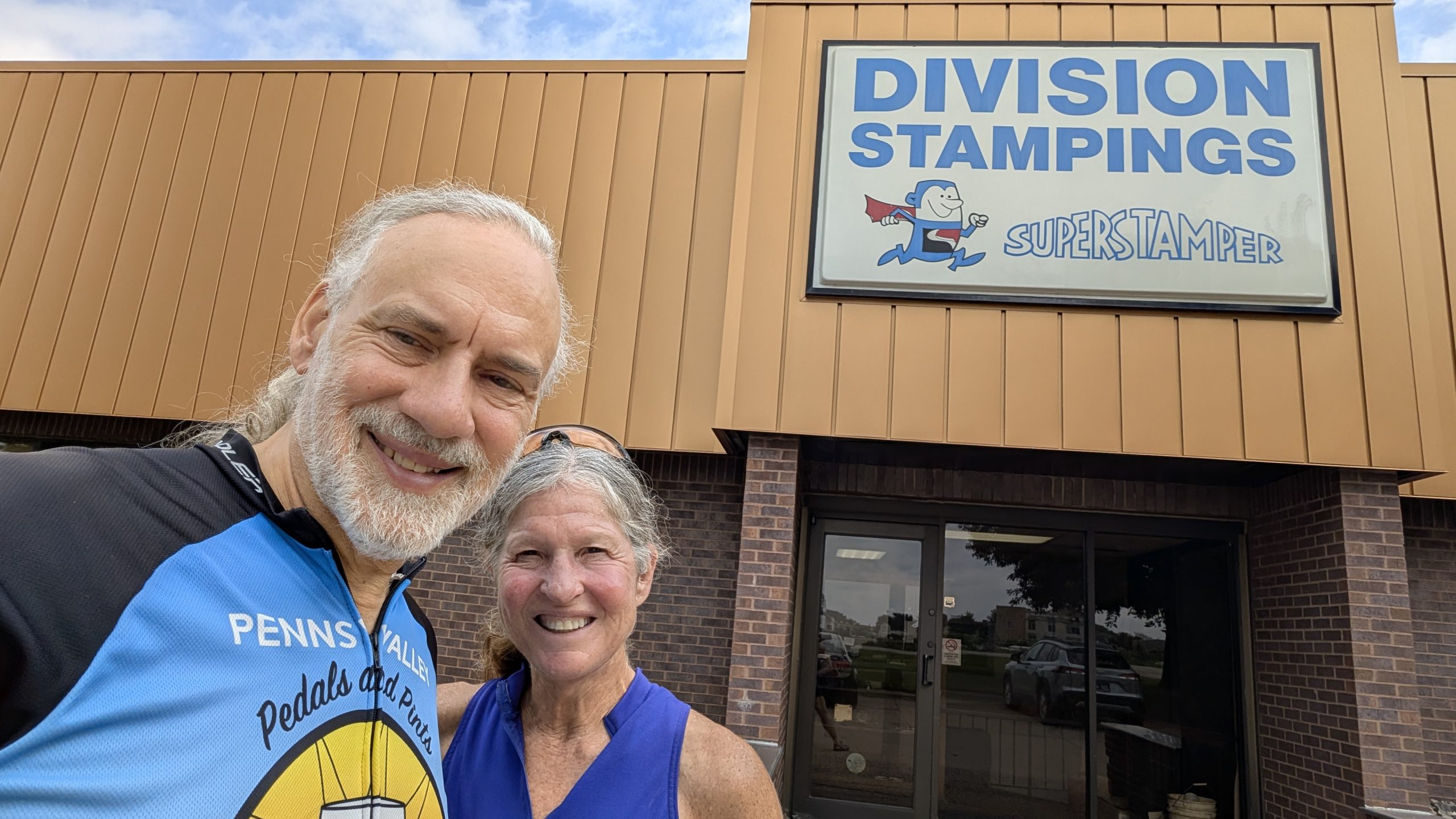 Robin’s place was great and we got all our laundry done, a good sleep, good coffee & breakfast in the morning. Chatting with Robin, we learned that she was one of the owners of a metal stamping company started by her father and her brother and her took over from him. It was pretty close to the route to our next stop, so we added it to the route and said we’d get there for a tour if possible. Robin wasn’t going to be available until after 11, but called her son and niece (who are taking over the biz) that we might be stopping by.