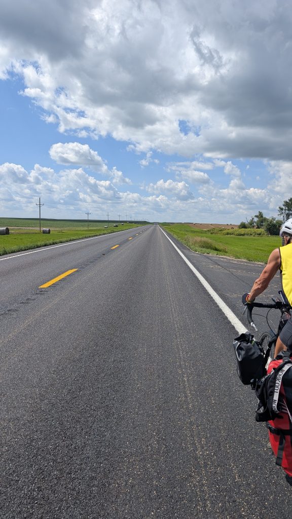It was a hard day all around. Started OK with everything drying out nicely, but once on the road, we encountered what we knew was coming but always hoped didn’t: Headwinds. Normal headwinds for ND, but we had mostly escaped them on this tour except in the early part of our ride in Ohio.