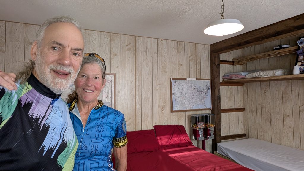 On days like this you’re hesitant to look at the mileage left so as not to get discouraged, but you do anyway, and yeah, it can be discouraging. However, you can’t pick the wind direction so it’s just a part of that day’s ride. On the way we met Alex going the other way. We stopped to talk and learned that he had been at the Honey Hub the previous couple of nights. The owner told him he might see us. He was reveling in his tailwind and commiserating with our pain, but he also told us that tomorrow was going to be in our favor and he’d have the headwinds! We’ll see!