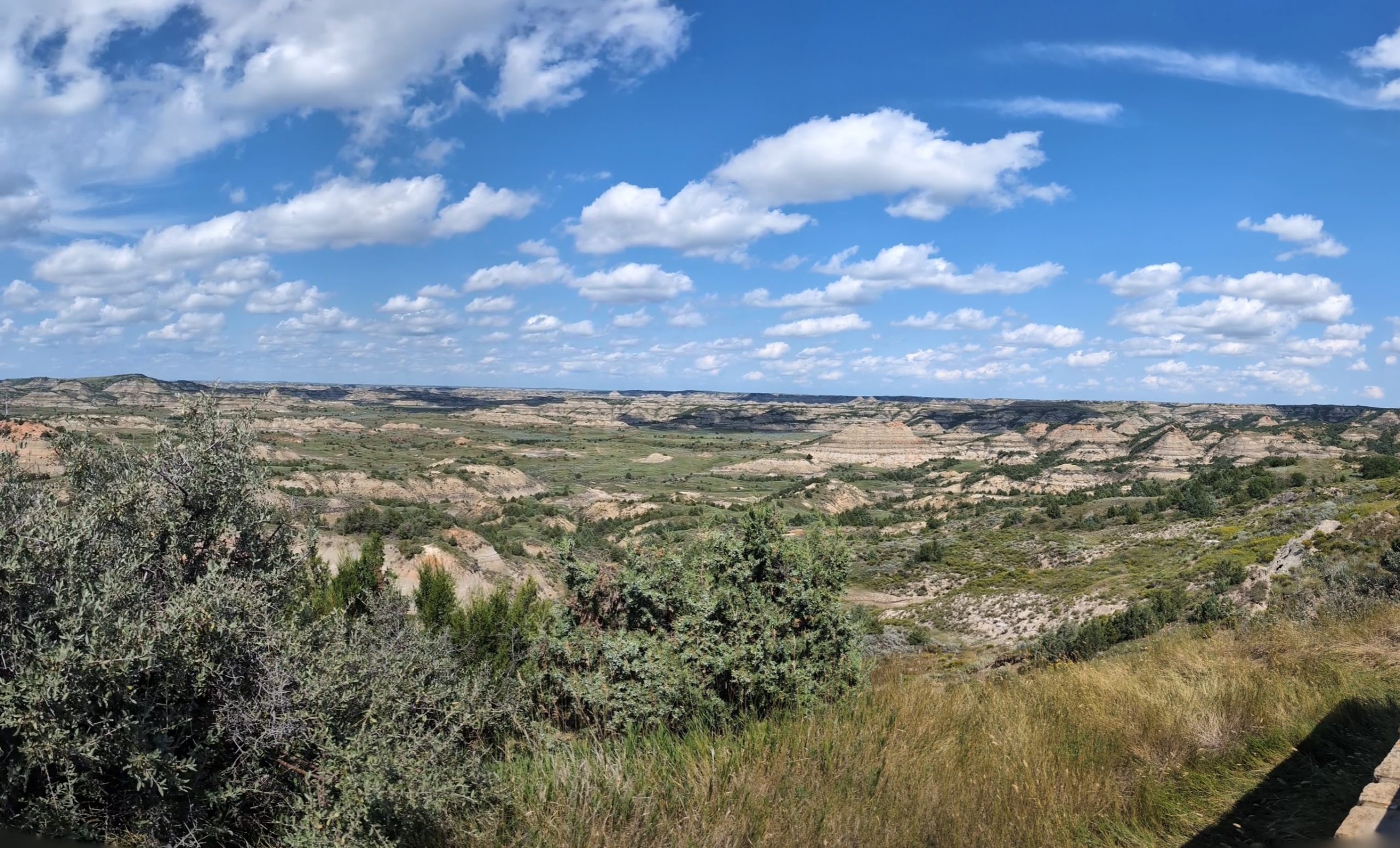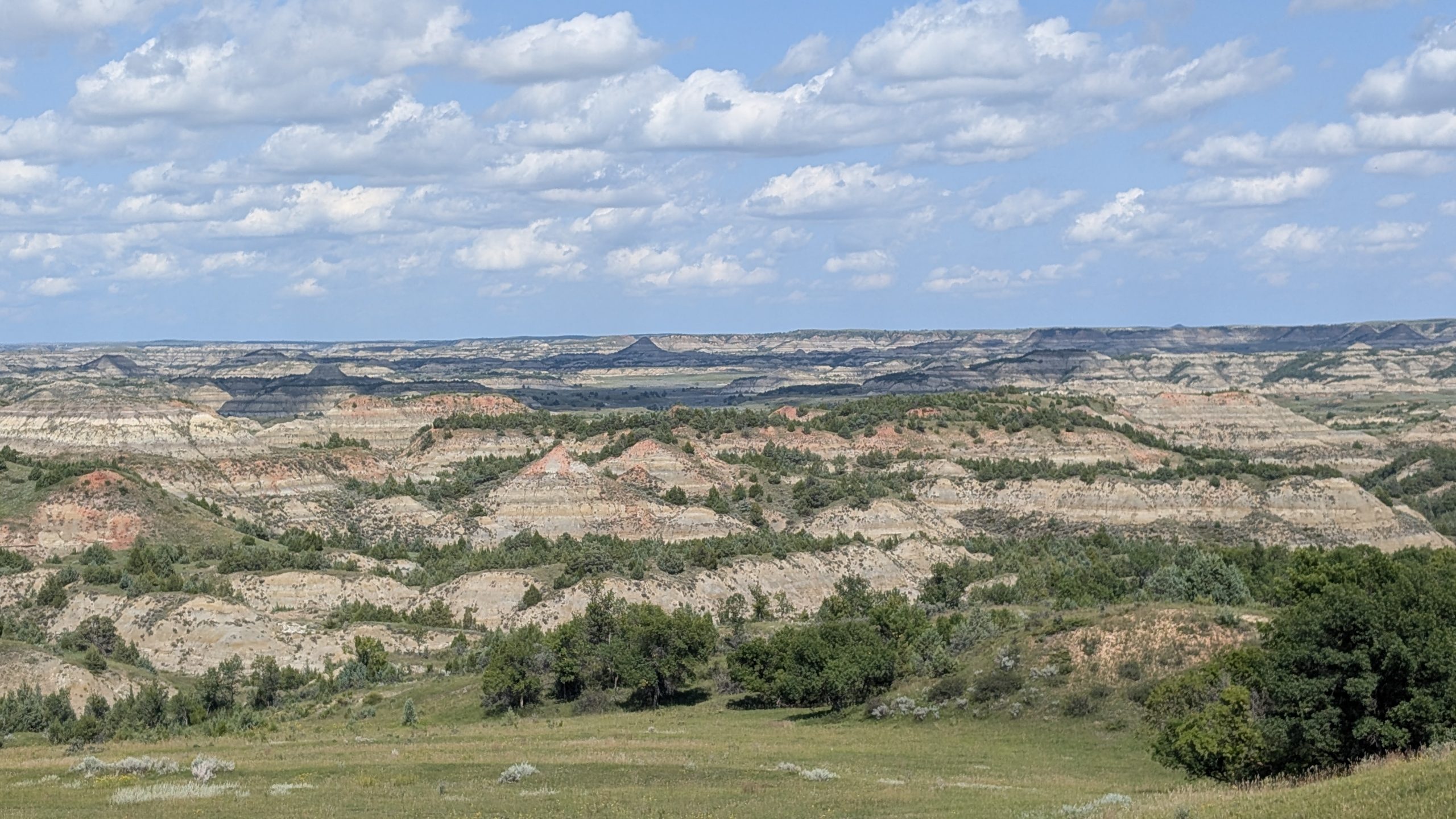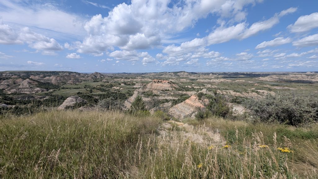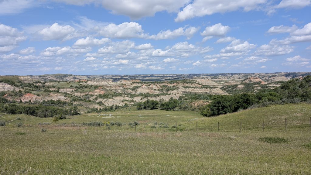 Today we reached out Western and Northern-most points in Medora and the Theodore Roosevelt National Park South Unit. On the way in we stopped at the Painted Canyon Visitor Center where Bonnie from Bellefonte saw my Penns Valley Pedals & Pints jersey and introduced herself. We got a good first look at the Badlands and headed on to Medora.