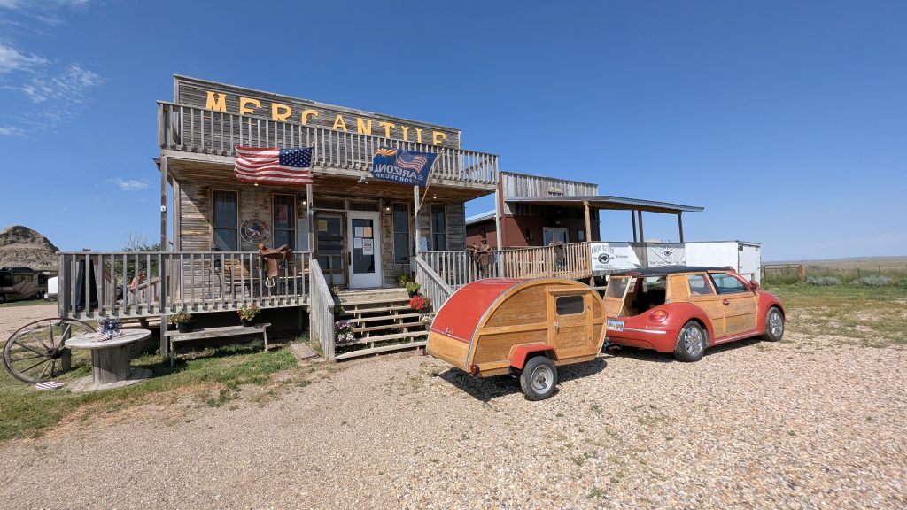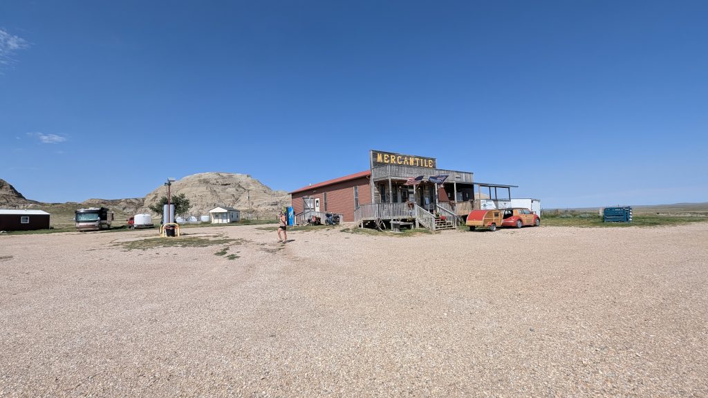 Another long day out of Buffalo to cover the vast spaces of SD with absolutely nothing except cattle ranches and farms. We did have a wonderful tailwind from the NNE and we sailed through to our first stop at Crow Buttes Mercantile in Redig – the recommendation from Dave the motorbiker we met at the Buffalo City Bar yesterday.