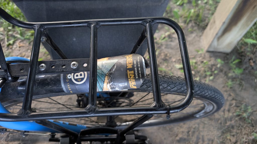 Stopped at a convenience store and refilled water and ice. Dana headed to the campground and I went to the hardware store to get some screws to fix Dana’s straining at the seams panniers. $3.60 and 20 min later, I had the bags repaired. While I did that, Dana went for a walk and came upon and accident scene in the town and had a nice chat with officer Garcia.