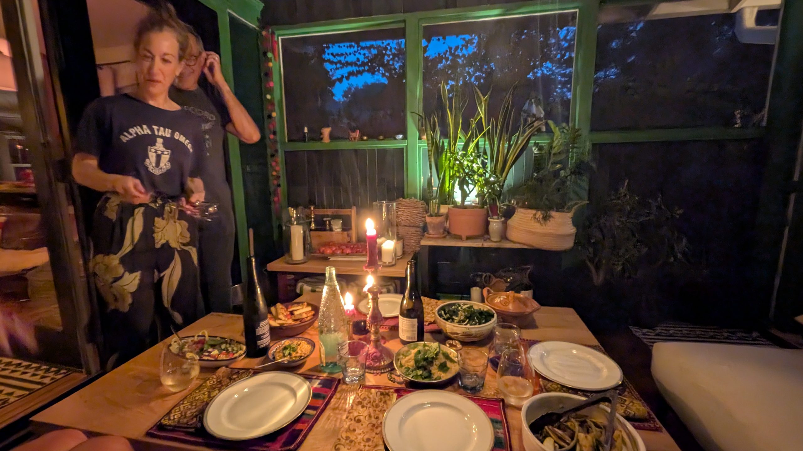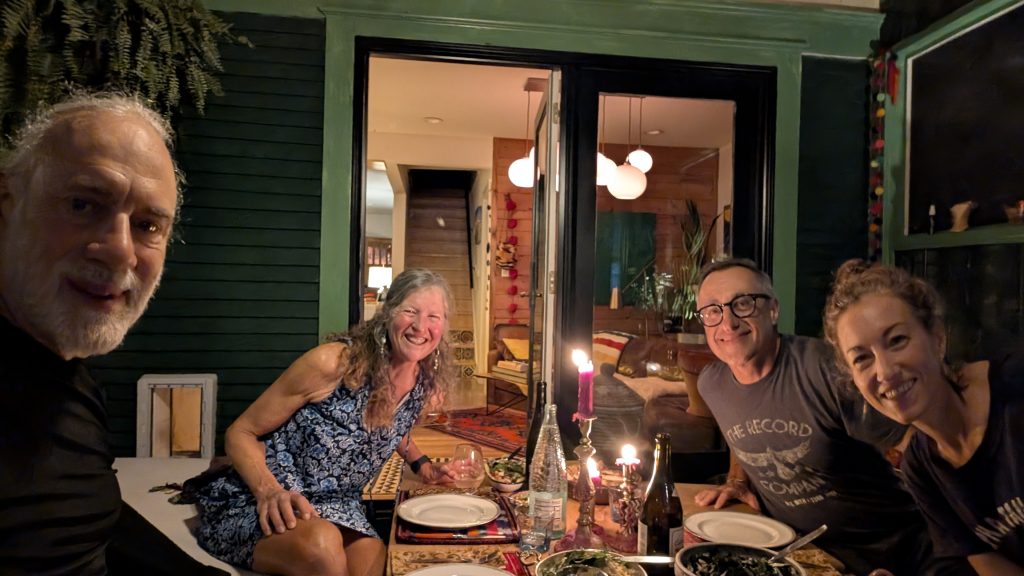 And what hosts they were. Another great Warmshowers experience. Peter and Hannah treated us to an amazing Middle-Eastern meal, wine, and story swapping, including about how the Airstream ended up landlocked into their back yard (Peter lived in it after the very costly rehab was done, and when he moved in to Hannah’s house, they moved the Airstream into the backyard — now their guest place).